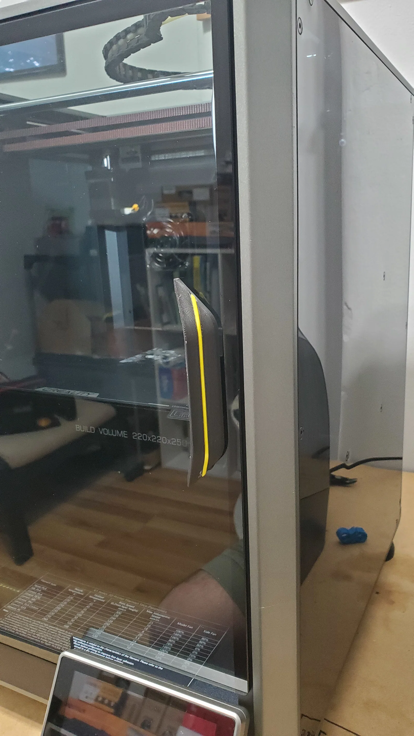 Bạn đang sở hữu một chiếc máy in 3D Creality K1C và cảm thấy việc mở cửa kính phía trước đôi khi khá bất tiện? Mẫu tay nắm cửa này chính là giải pháp nâng cấp đơn giản nhưng vô cùng hiệu quả dành cho bạn. Được thiết kế chuyên biệt để lắp đặt trực tiếp lên cánh cửa kính của dòng máy K1, phụ kiện này giúp thao tác mở cửa trở nên nhẹ nhàng, chắc chắn và chuyên nghiệp hơn hẳn so với việc cầm trực tiếp vào mặt kính.