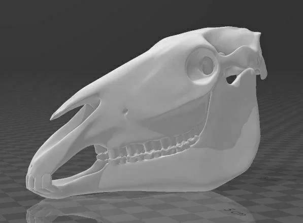 Mẫu 3D hộp sọ ngựa (equine) full size, thiết kế dạng nhiều phần (multiple part). Phù hợp in 3D để trưng bày giải trí và học/ nghiên cứu giải phẫu cơ bản về ngựa.