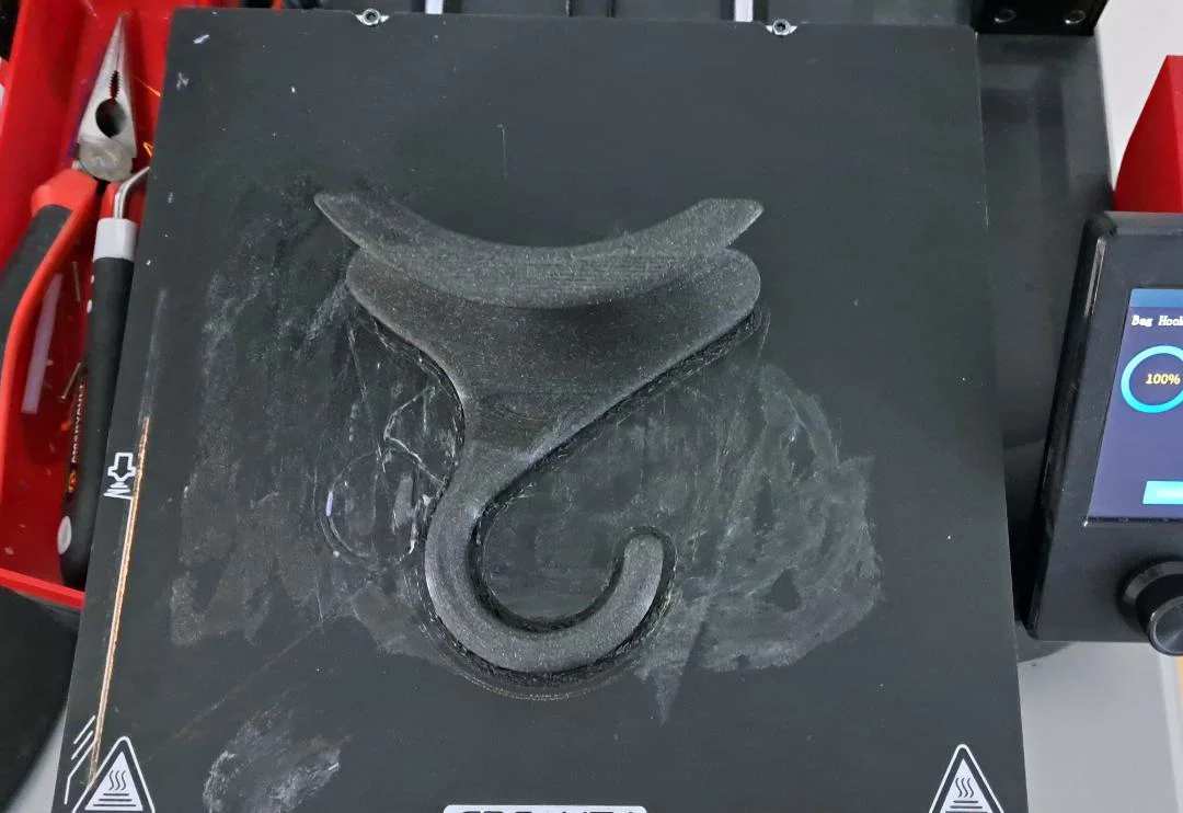 Cái Bag Coat Hanger màu trắng trong hình là bản thử đầu tiên, nhưng mình thấy nó tốn vật liệu quá và còn cải thiện được. File .stl đính kèm là cho phiên bản màu cam và đen.