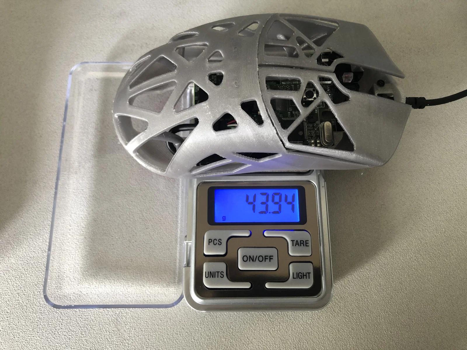 Mình đề xuất vật liệu như PLA hoặc ít nhất phải cứng tương đương. PETG bị dẻo quá cho bản in này, làm chuột không còn cảm giác cứng cáp.