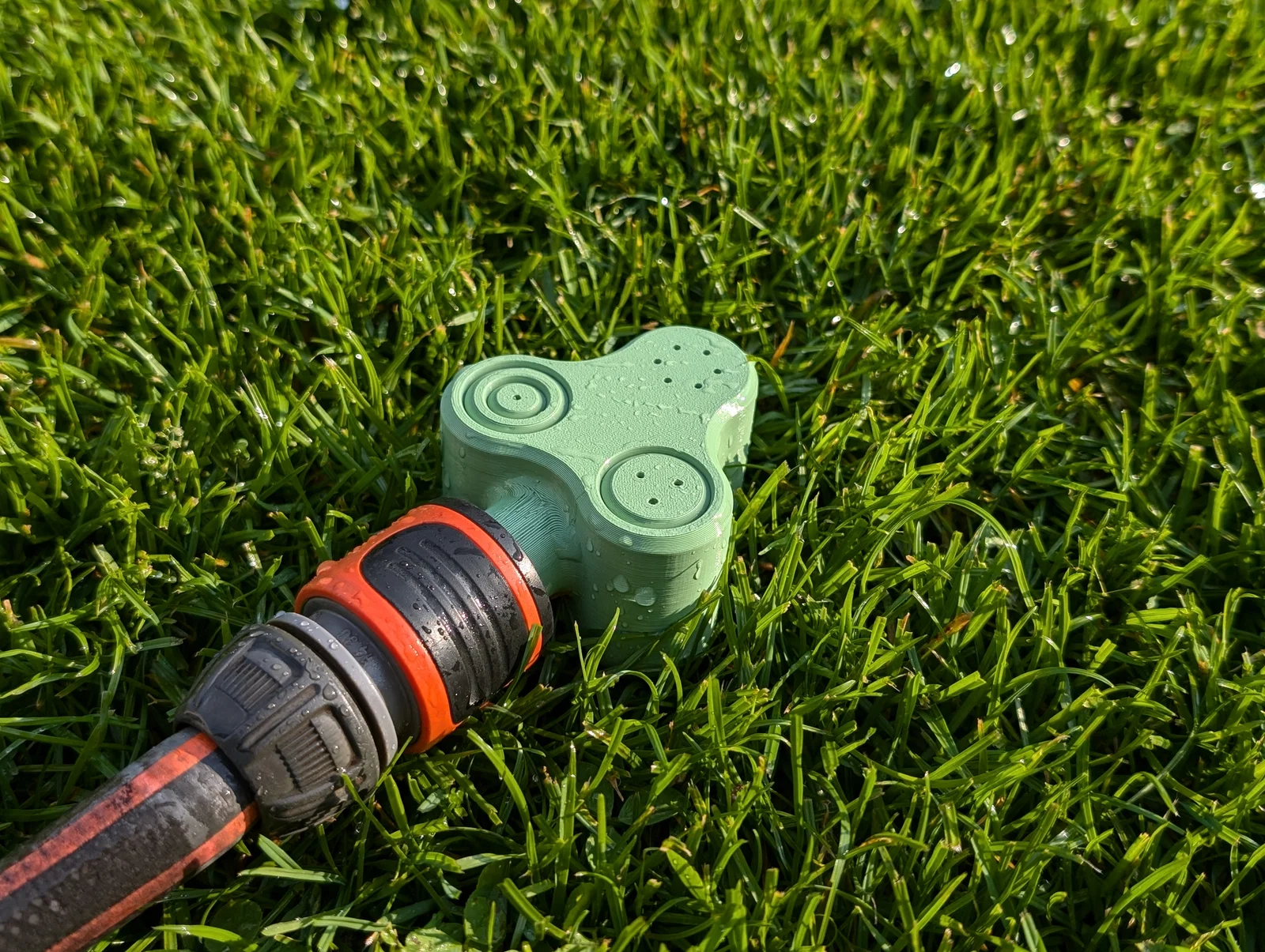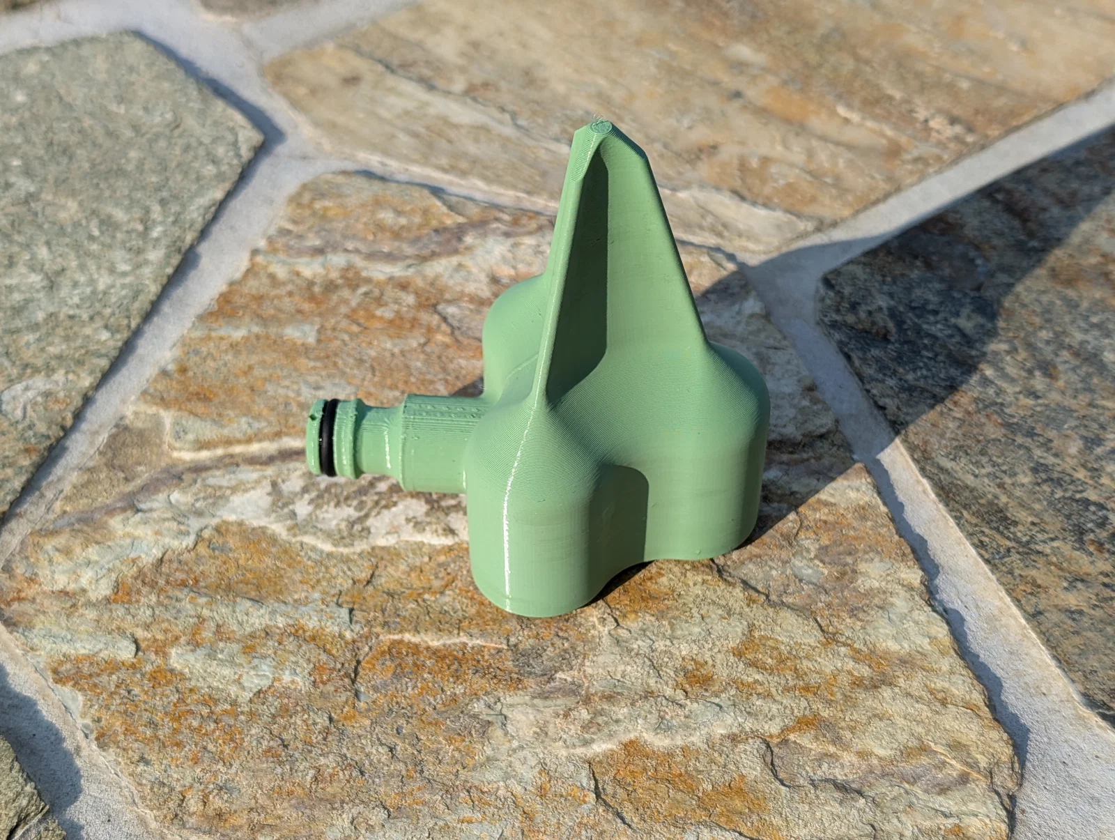 Vòi phun nước gấp gọn (Print in Place) dễ thương cho mấy bé chơi ngoài vườn. Phần đầu nối nước cần thêm chút support; để kín nước chỉ cần dùng ron (seal) zin của adapter.