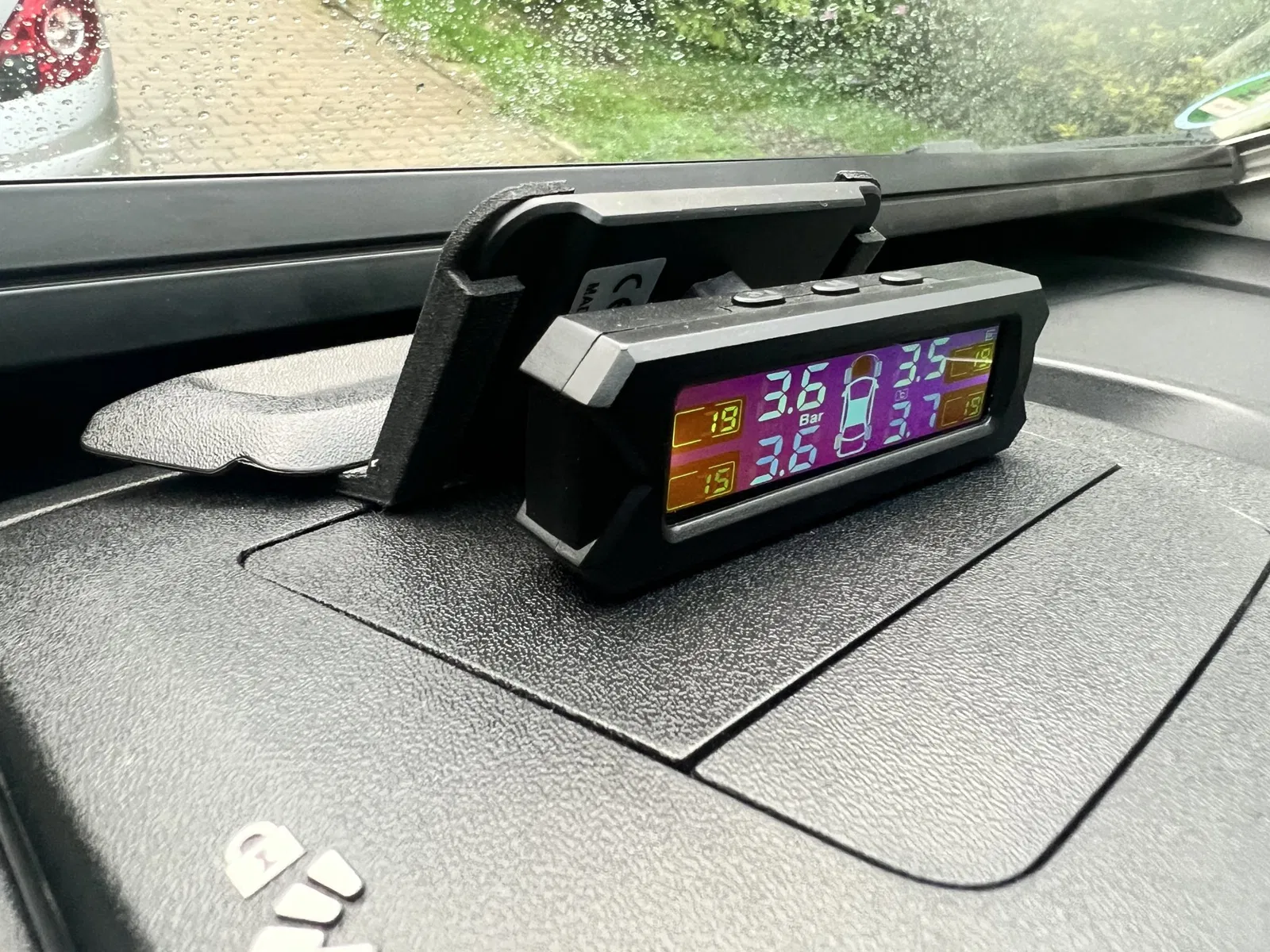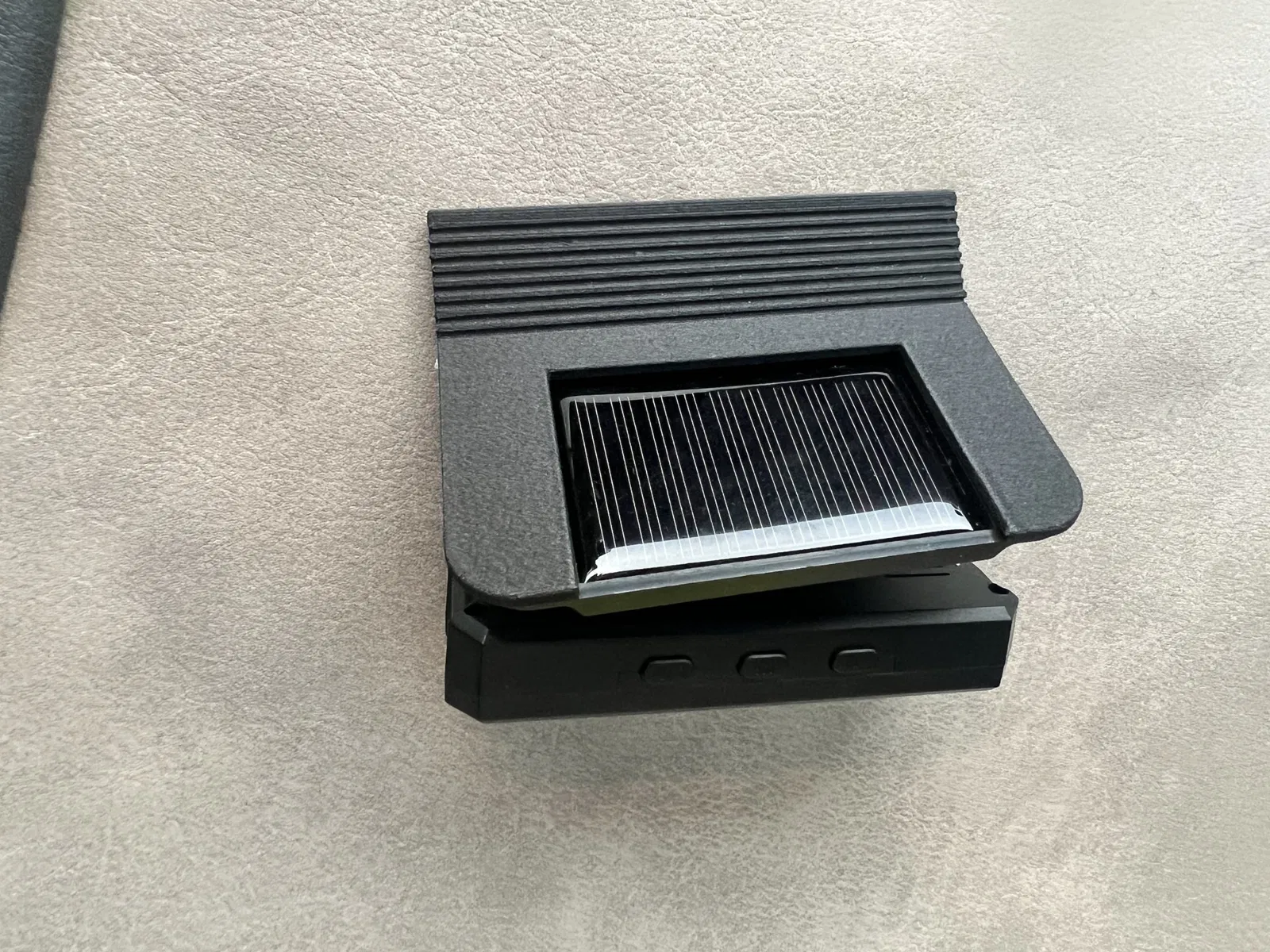 Tôi không muốn dán bộ cảm biến áp suất lốp vào kính chắn gió như dự kiến, vì vậy tôi sẽ phải lấy nó ra khỏi giá đỡ đi kèm mỗi lần khi tôi kéo rèm lên. Do đó, tôi đã thiết kế giá đỡ này, có thể dễ dàng kẹp vào kẹp của bảng kẹp đã gập xuống. Như vậy, tấm năng lượng mặt trời nhận đủ ánh sáng (tôi chưa bao giờ phải sạc qua cáp) và hệ thống dễ nhìn và có thể tháo rời mà không để lại dấu vết. Có thể in mà không cần hỗ trợ. Do ánh sáng mặt trời, tôi đã chọn Greentech Pro Carbon của Extrudr, và cho đến bây giờ nó hoạt động tốt. ABS, ASA, Nylon hoặc các loại tương tự cũng nên hoạt động.