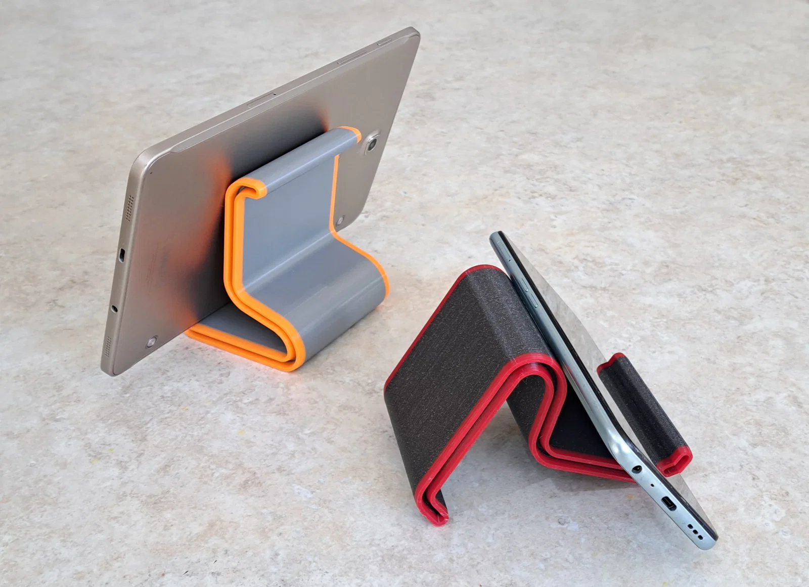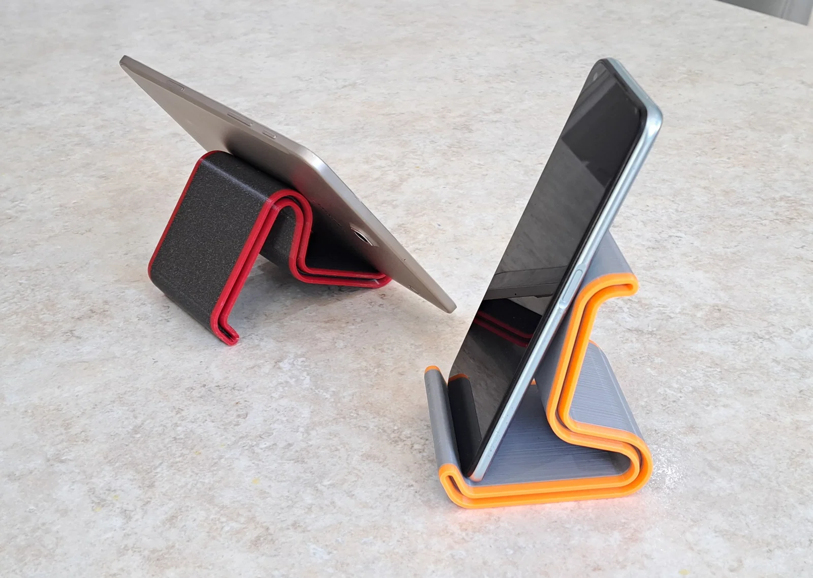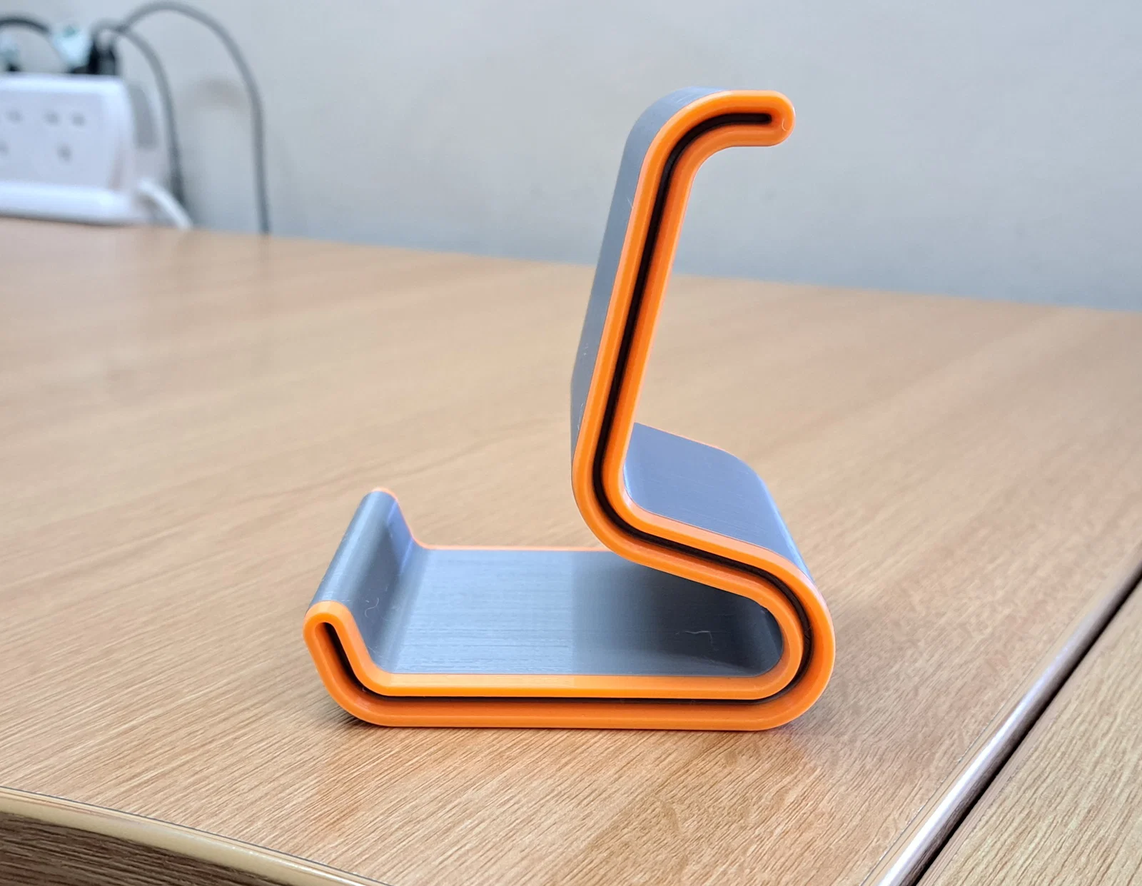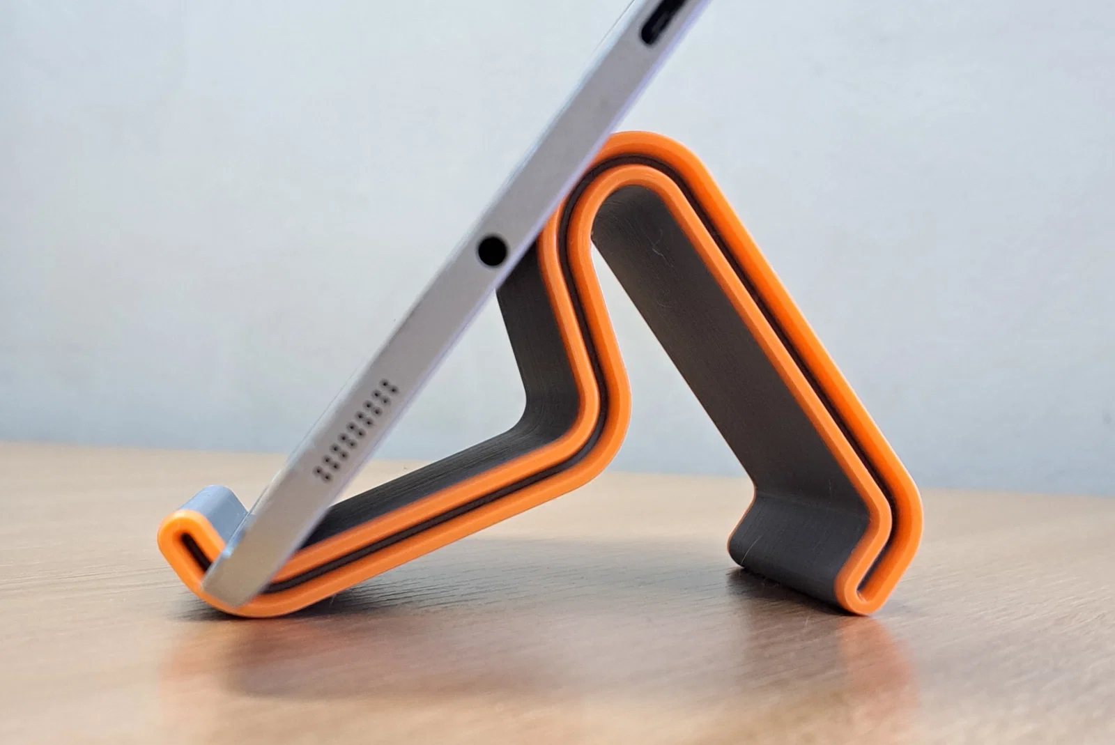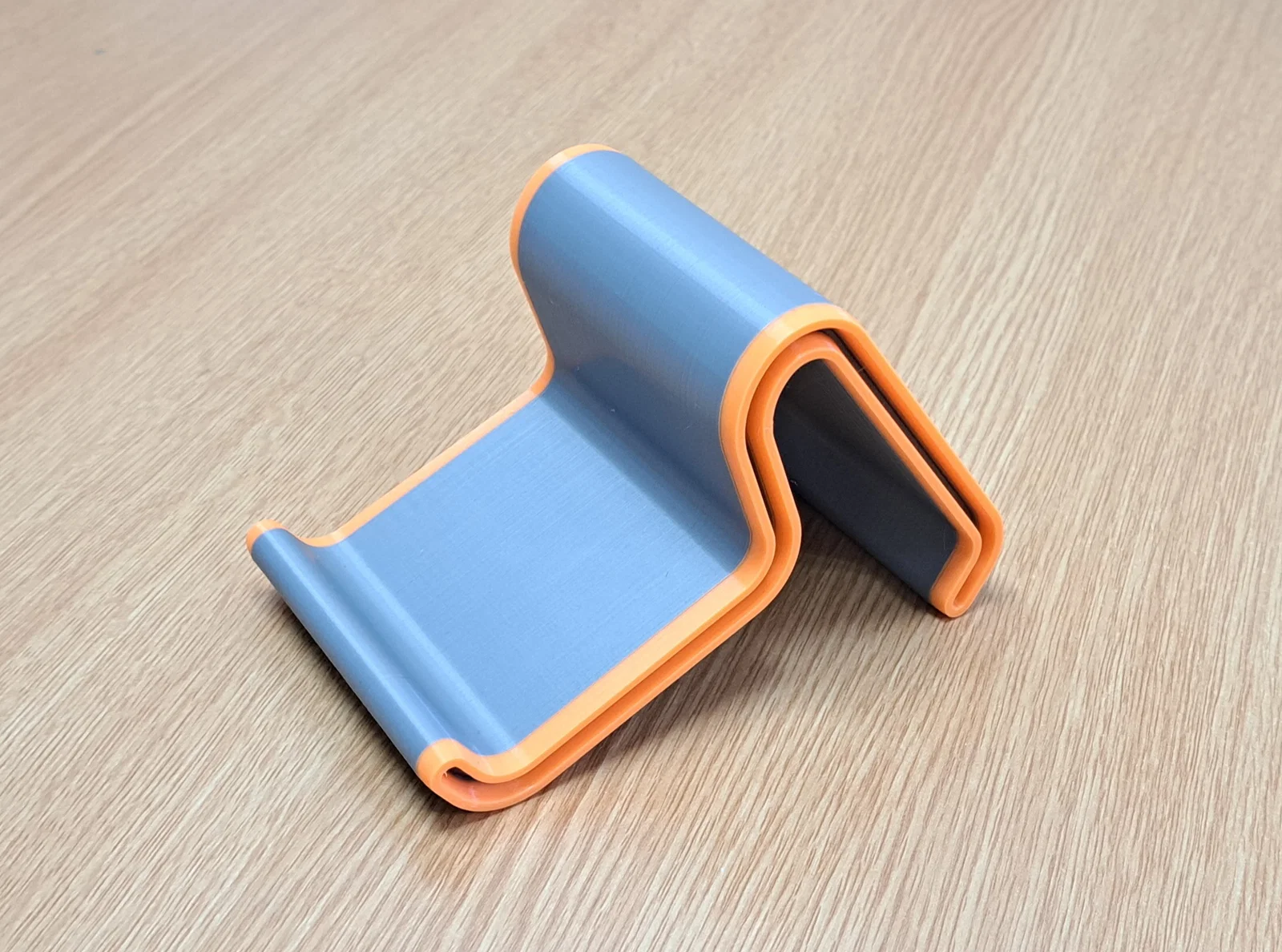 Giá đỡ điện thoại/tablet thiết kế support-free, in không cần support. Có 2 vị trí đặt để canh góc nhìn linh hoạt. Có thể in 1 màu hoặc 2 màu để làm nổi chi tiết bên hông (Orca multi colour).