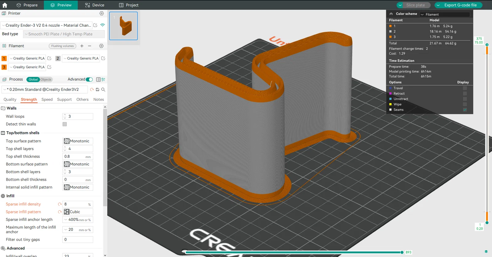 Bạn có thể in một màu hoặc in hai màu để làm nổi bật các chi tiết bên hông như mình đã làm bằng tuỳ chọn multi colour trong Orca.