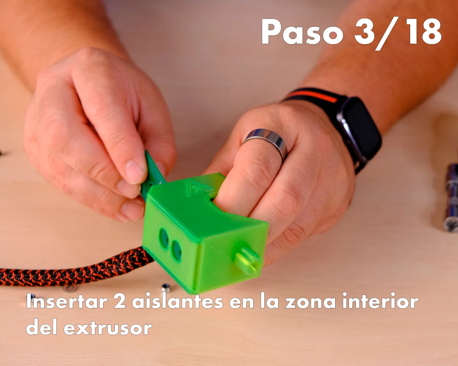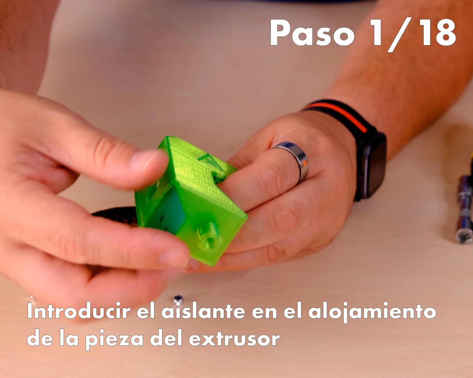 1- Cho lớp cách nhiệt vào đúng vị trí trong phần lắp của chi tiết extruder