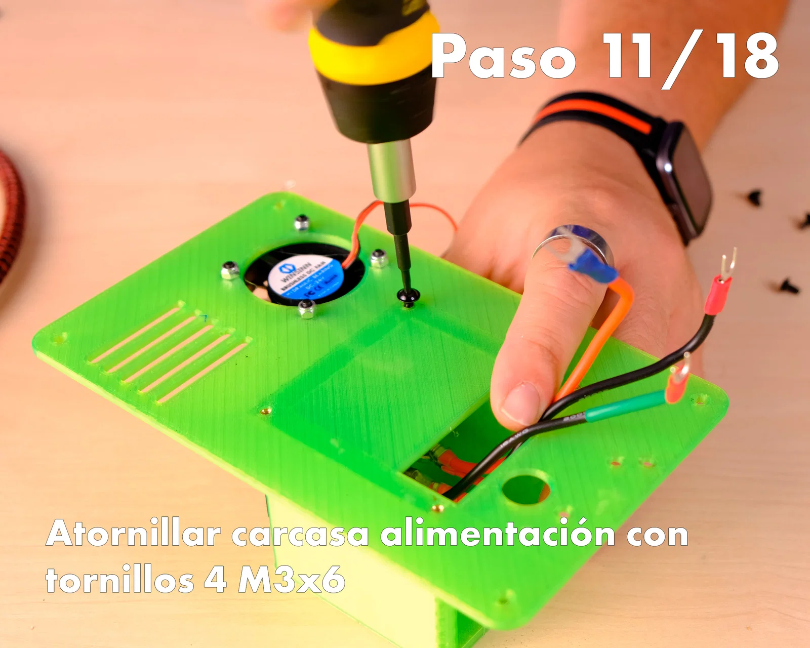 11- Bắt vỏ nguồn bằng 4 vít M3x6