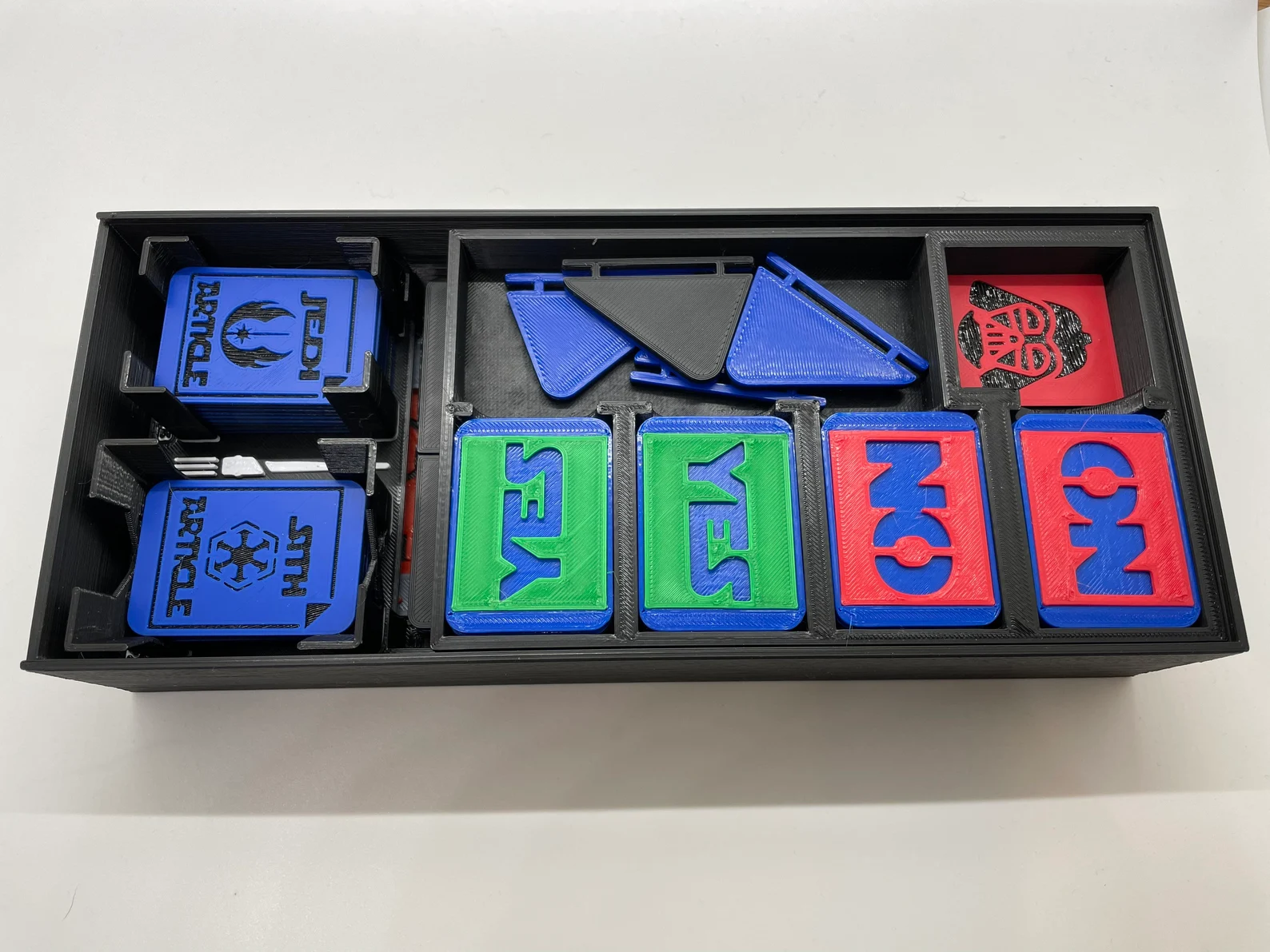 Lấy sự ám ảnh của bạn với trò chơi Secret Hitler phổ biến và kết hợp nó với sự ám ảnh khác của bạn, Star Wars! Phiên bản này được chơi giống như Secret Hitler, nhưng với chủ đề Star Wars. Chọn Phó Thủ tướng của bạn, bỏ phiếu và chọn giữa các Bài viết Jedi và Sith. Đừng để Palpatine trở thành Thủ tướng (hoặc có thể)!