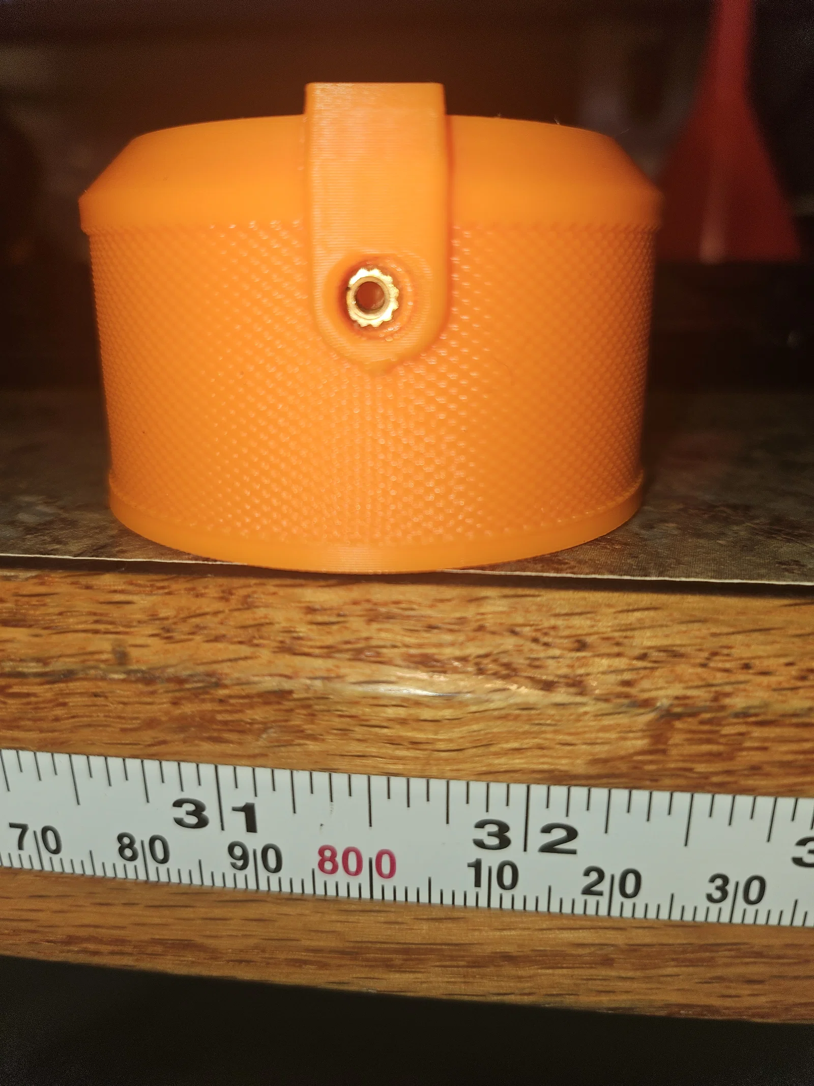 Trong thiết kế có một lỗ cho vít M3x25 barrel hex head để siết chặt vào trục ở giữa núm. Lỗ này hơi nhỏ hơn con vít nên bạn sẽ tự ren khi vặn vào. Nếu bạn có sẵn thì mình khuyên dùng insert heatset M3x5x4 như trong hình. Có thể mình làm hơi “dư kỹ” thôi: núm vốn đã khít và chắc, nhưng vẫn có thể kéo ra với chút lực, nên khả năng là không cần vít/heatset cũng được.