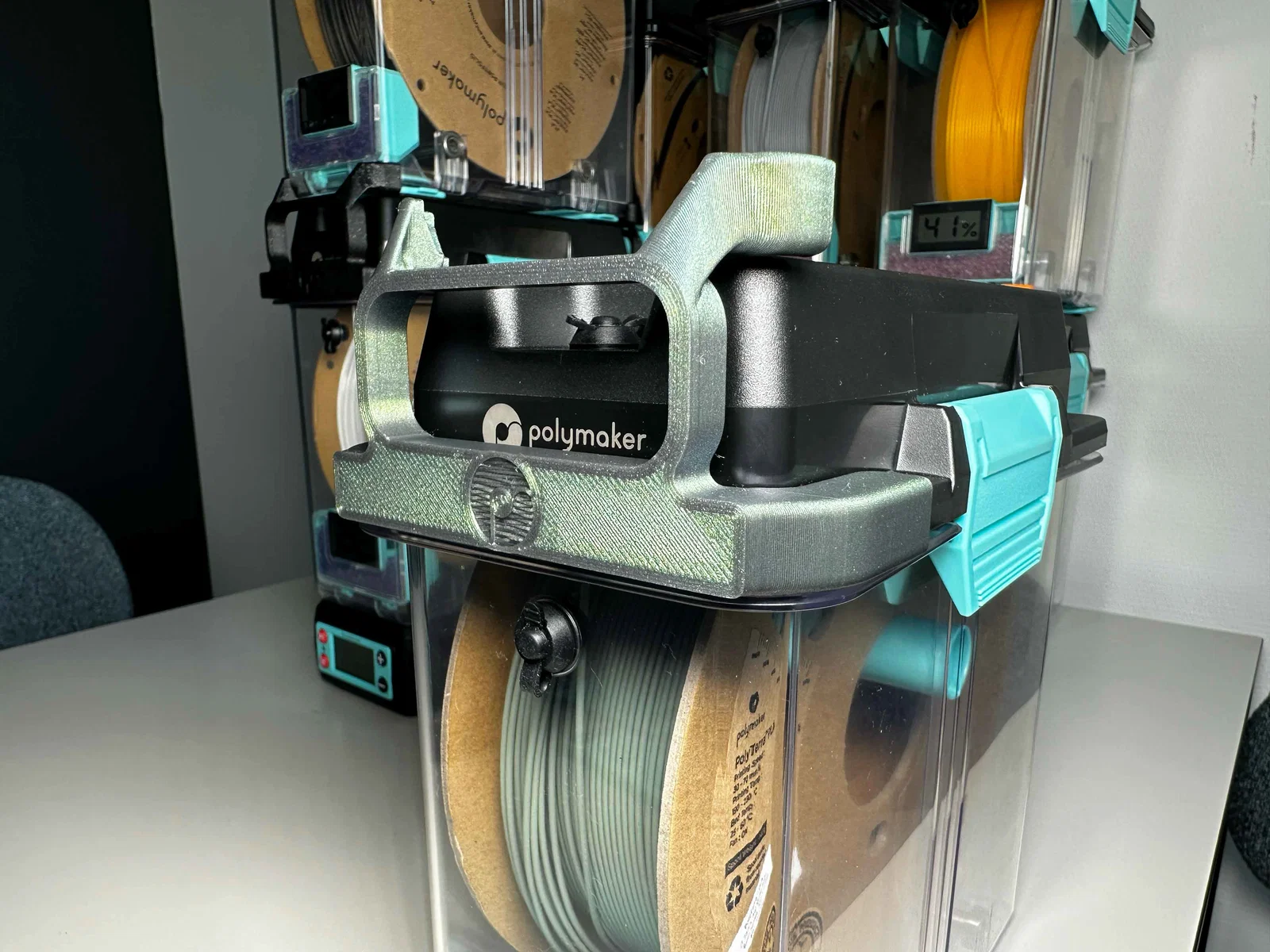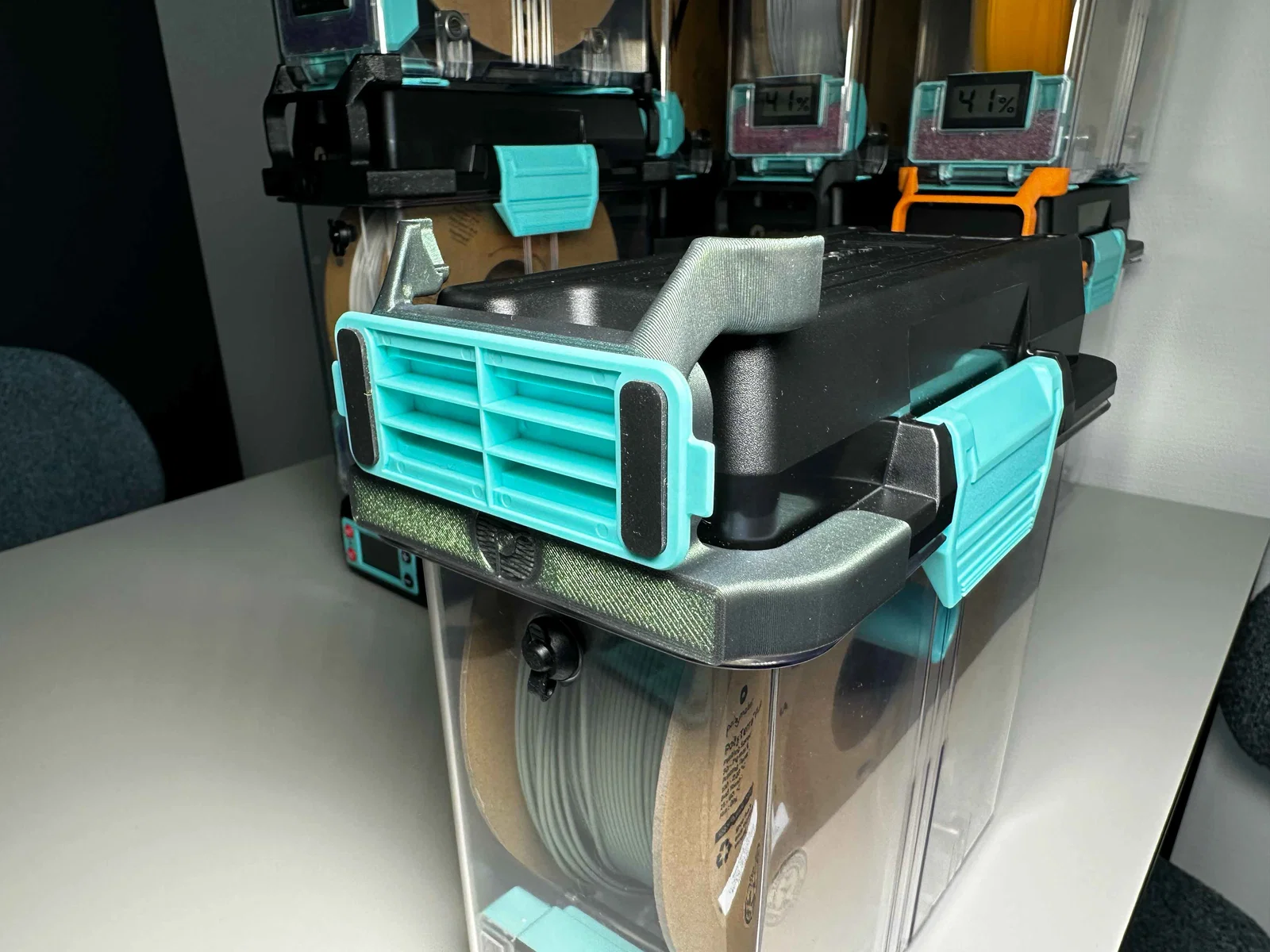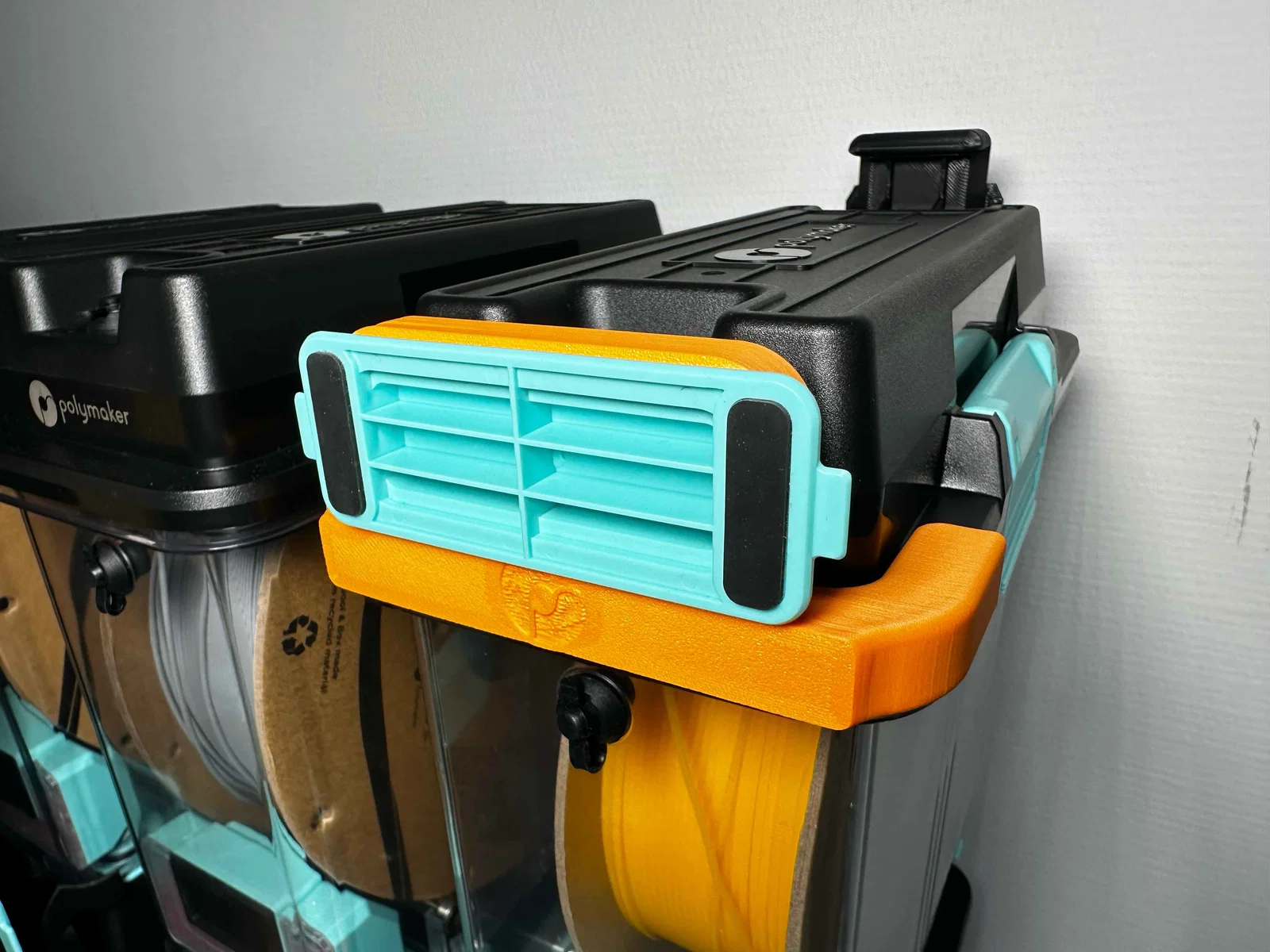Airlock Dock & Stacker trượt vào phần nắp của PolyDryer™ Box và được giữ cố định bằng kiểu lắp ma sát (friction fit). Các airlock có thể được ấn lắp (press fit) vào dock và cũng được giữ tại chỗ bằng friction fit. Bản Stacker cho phép bạn chồng nhiều PolyDryer™ Box lên nhau, và các tab trên chi tiết in 3D sẽ đảm bảo các hộp được canh thẳng, thẳng hàng gọn gàng.