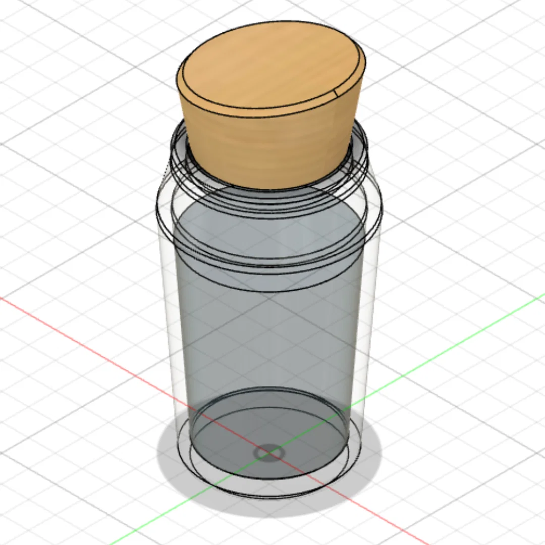 Mẫu này có kích thước tương tự vật phẩm ngoài đời và sẽ vừa khít. In cả hai phần theo phương thẳng đứng (upright) và không cần supports. Mình khuyên in phần thân dưới bằng PLA màu xanh, hoặc filament trong như Polycarbonate hay ABS. Phần nắp thì nên in bằng Wood PLA, hoặc filament màu nâu.