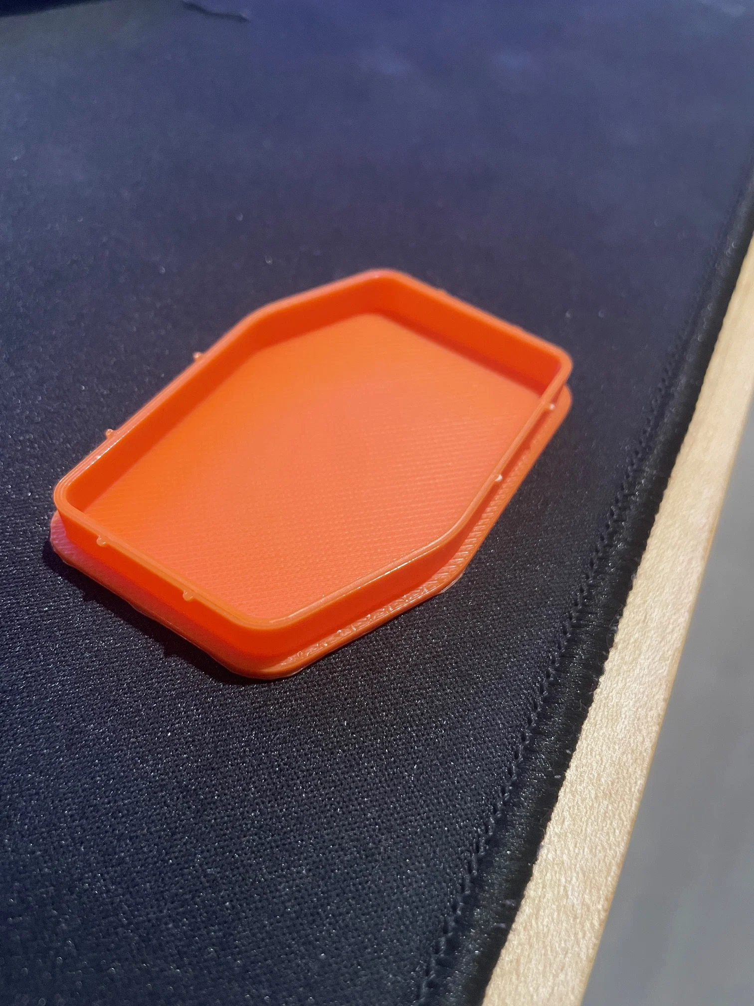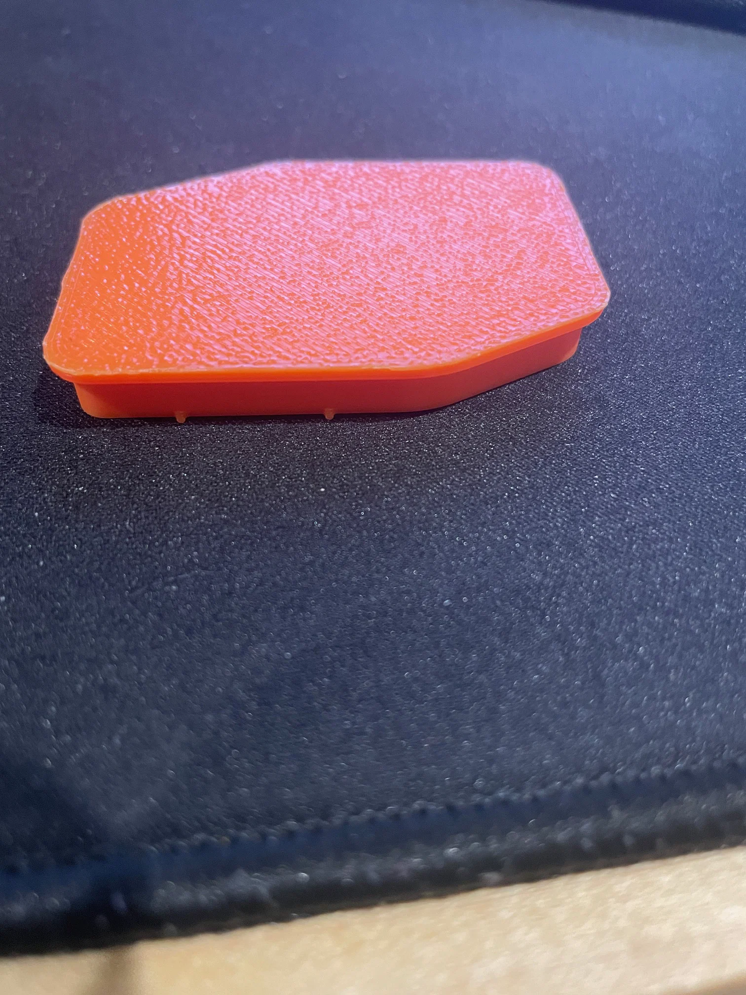 Nắp che bụi cho trục (arbor) của Ridgid Track Saw do mình tự thiết kế để khỏi tốn 10 đô mua bản in 3D sẵn. Lắp nhớ canh đúng hai mặt vát và đặt các núm nhỏ hơn về bên phải lỗ.