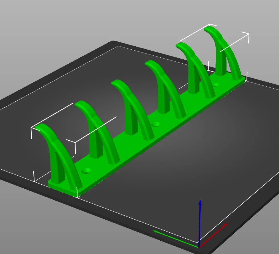 Sản phẩm này được thiết kế đặc biệt cho việc in 3D không cần support, giúp bạn tiết kiệm tối đa thời gian hậu kỳ và lượng nhựa in dư thừa. Tổng chiều dài của thanh treo là 27cm, một kích thước rất vừa vặn, không quá cồng kềnh nhưng đủ để bạn treo được nhiều vật dụng khác nhau cùng một lúc. Các chấu treo được bo góc tinh tế, giúp bảo vệ vải áo hoặc túi xách của bạn khỏi bị trầy xước hay giãn hỏng trong quá trình sử dụng lâu dài.
