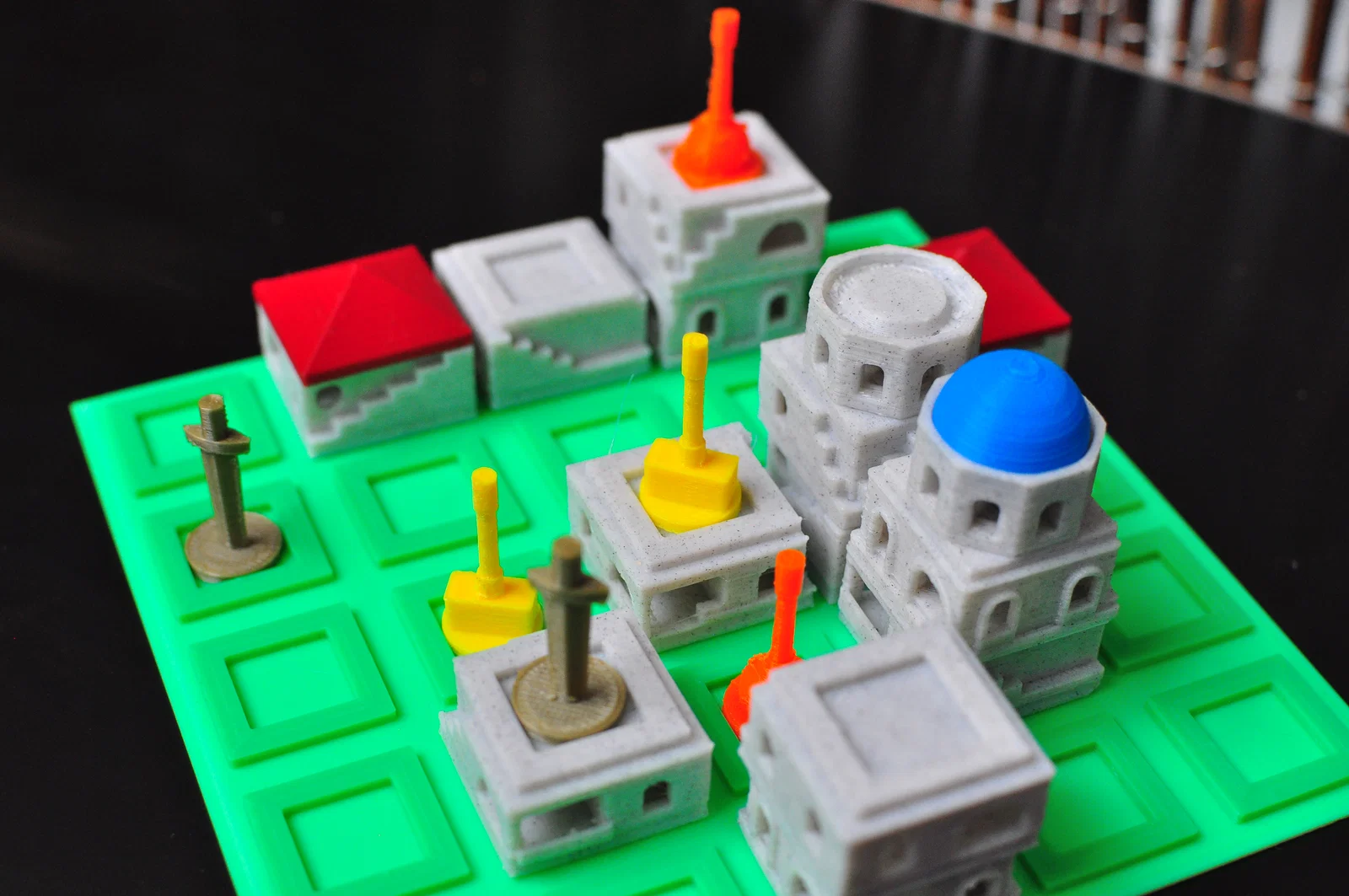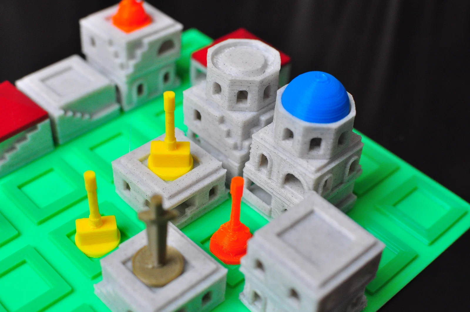 Player Pieces - Dù Santorini chơi 2 người là hay nhất, game vẫn có thể chơi 3 hoặc 4 người. Bên dưới là các thiết kế quân người chơi của mình.