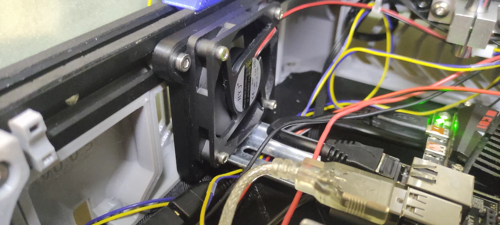 Thiết kế này không chỉ tập trung vào hiệu năng tản nhiệt mà còn chú trọng đến tính thẩm mỹ và khả năng lắp đặt gọn gàng. Thay vì phải chế cháo vướng víu bằng dây buộc, anh em có thể gắn quạt trực tiếp lên bracket này một cách chắc chắn. Việc bố trí quạt tại vị trí này giúp tối ưu hóa luồng khí thổi qua các driver và vi xử lý trên bo mạch, hạn chế tối đa các lỗi do quá nhiệt gây ra trong quá trình in ấn các mẫu 3D phức tạp.