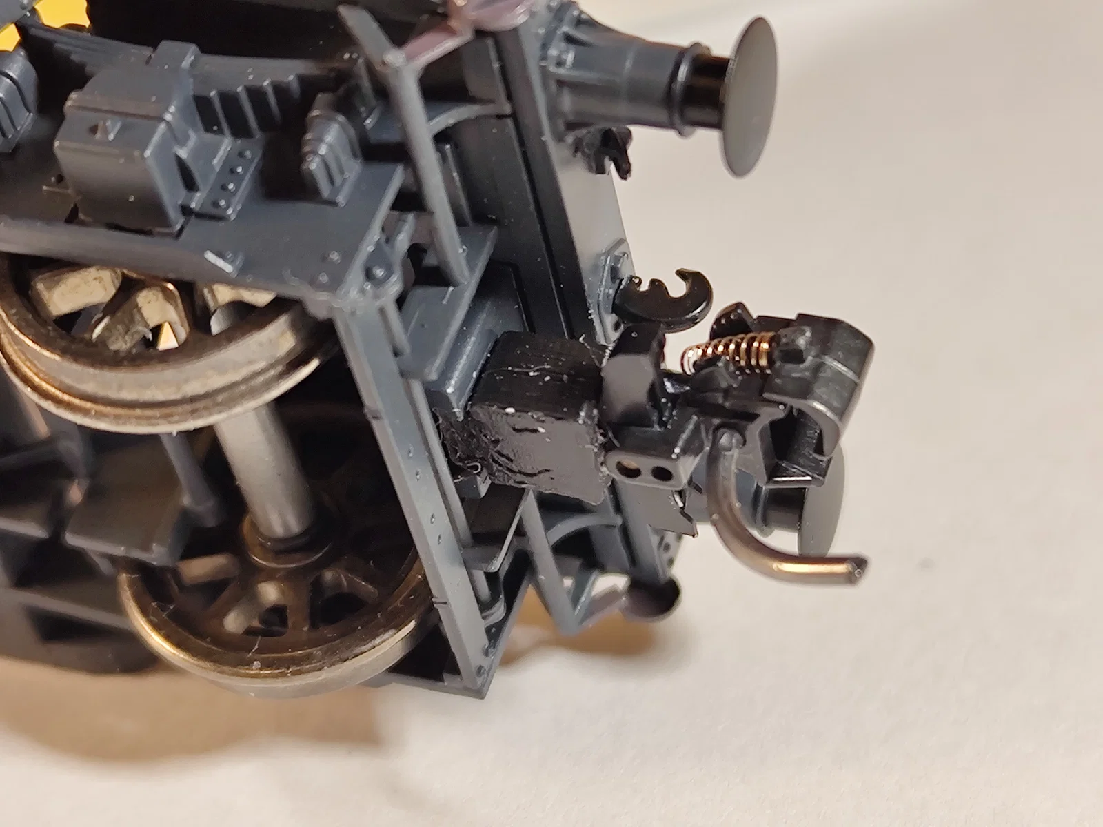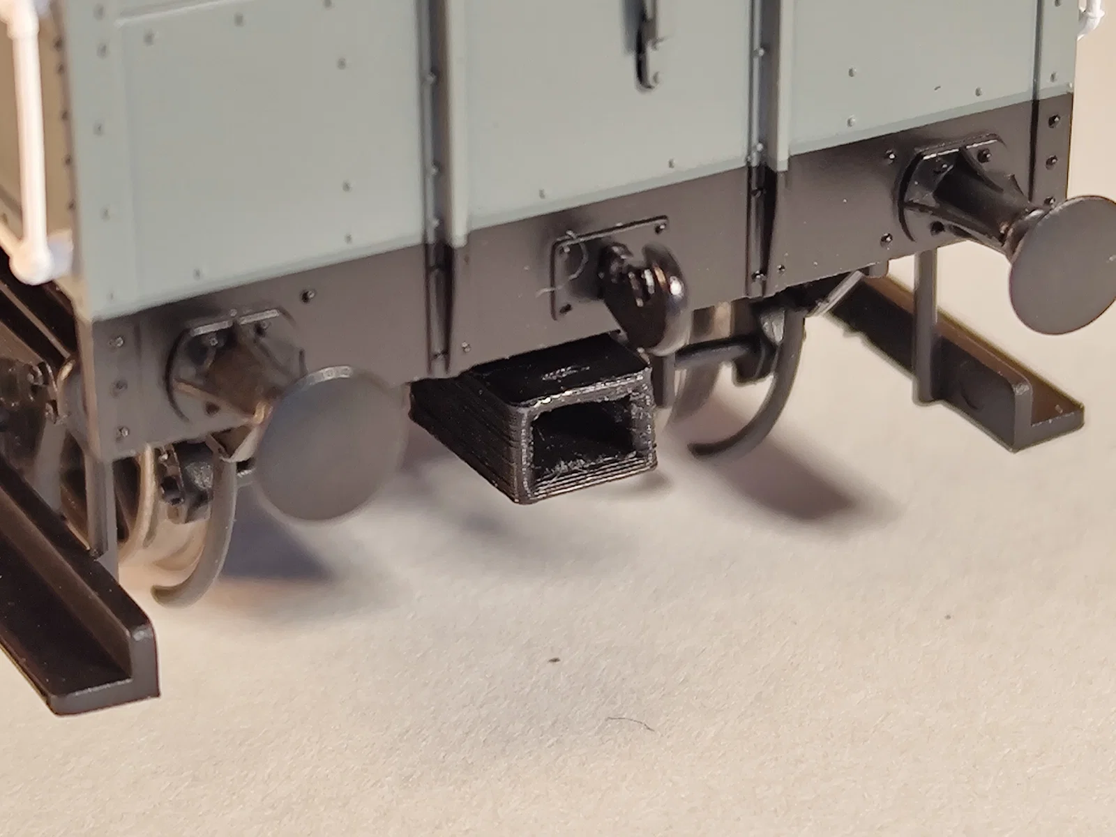 Mình có khá nhiều toa xe (và vài đầu máy) mà khe NEM 363 của nó đặt ở độ cao hoặc độ sâu so với mặt đệm (buffers) không đúng chuẩn. Khá nhiều món là của Bachmann (có vẻ họ “dị ứng” với việc theo tiêu chuẩn), nhưng các hãng khác cũng không ít. Hậu quả là cái NEM 362 pocket gắn vào sẽ không còn đúng theo spec.