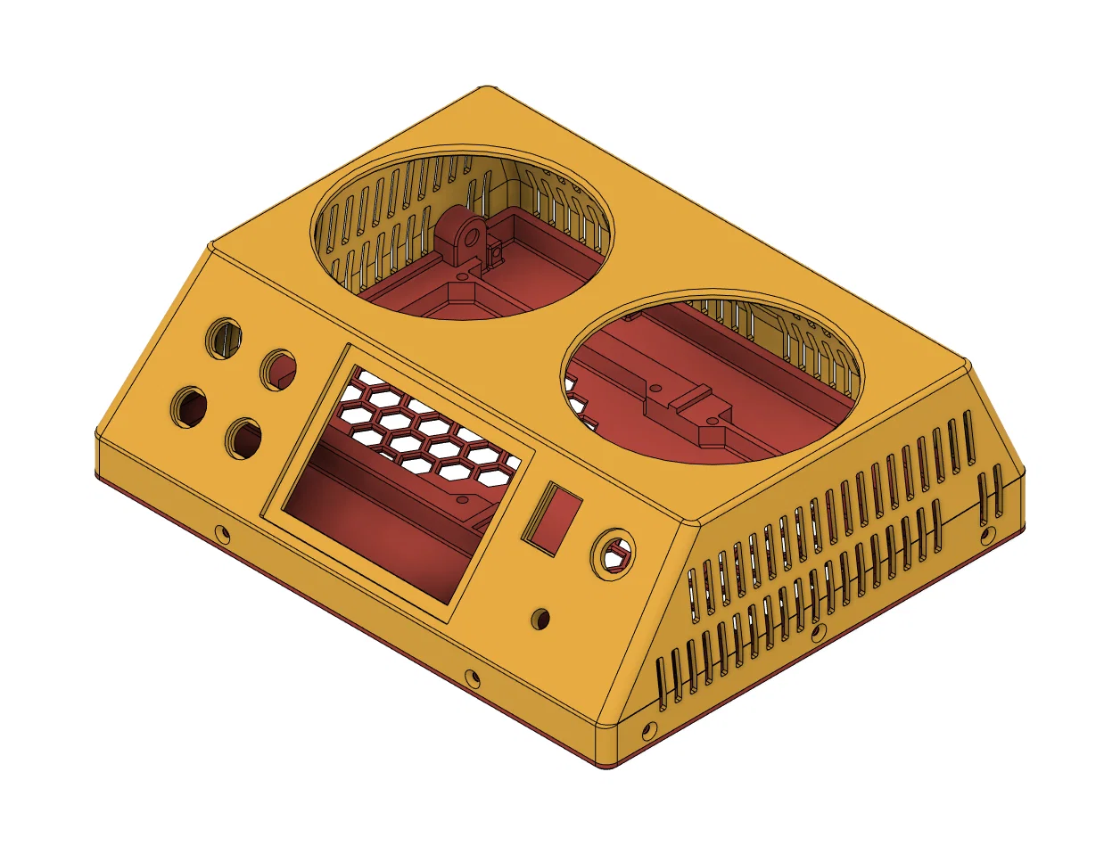 Nếu anh em đang sở hữu bộ thiết bị kiểm tra tải giả (electronic load) Atorch DL24 với màn hình hiển thị rời DL24M, chắc hẳn anh em sẽ cần một chiếc vỏ hộp (case) cứng cáp và chuyên nghiệp để bảo vệ linh kiện. Bản thiết kế 3D này được tạo ra để đáp ứng nhu cầu đó, giúp cố định chắc chắn màn hình hiển thị, các jack cắm nguồn, nút bấm và đặc biệt là hệ thống làm mát với hai quạt tản nhiệt cỡ lớn. Với cấu trúc này, thiết bị của anh em sẽ trông gọn gàng như một món đồ điện tử được sản xuất thương mại vậy.