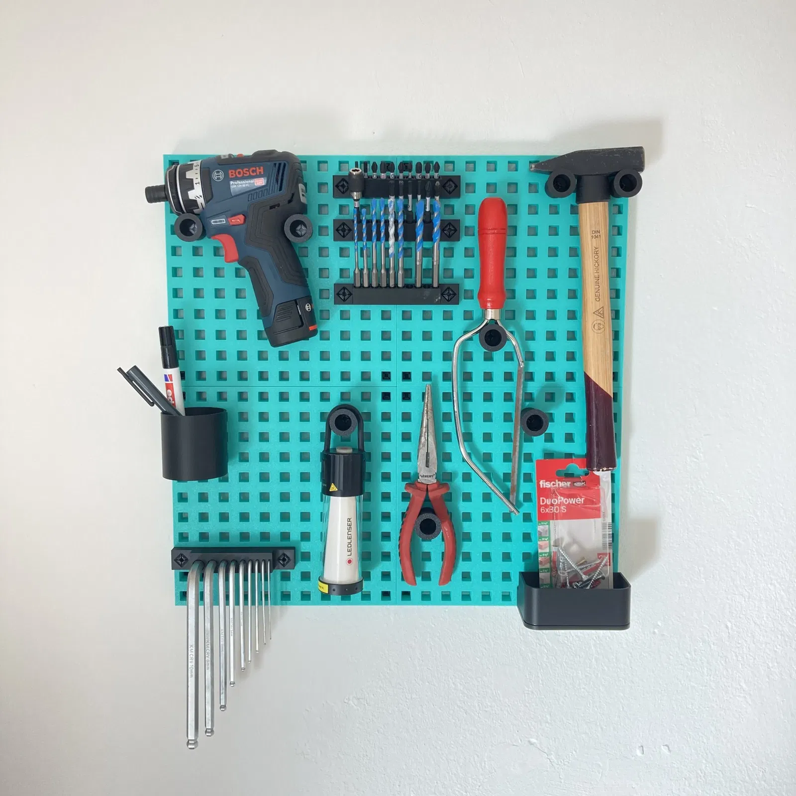 Trong dự án này, SteckBoard được sử dụng để tổ chức công cụ. Các tấm nền có thể được kết nối thông qua các đầu nối và được bắt vít vào tường. Các phích cắm cho phép các thành phần được gắn vào các tấm nền. Khuyến nghị của tôi là in các phích cắm và các đầu nối bằng PETG. Tôi vẫn có một số ý tưởng và cũng muốn điều chỉnh kích thước của các thùng chứa. Nếu có nhiều sự quan tâm, tôi cũng sẽ tải lên những mô hình này.