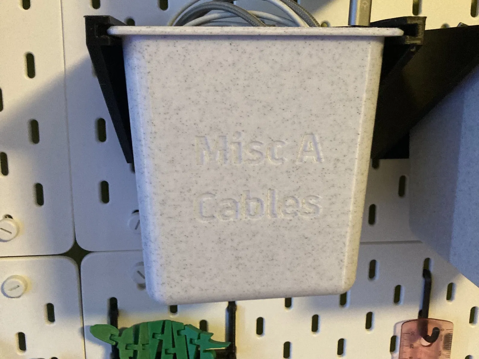 Một hộp kéo ra và kệ kết hợp cho bảng điều khiển IKEA Skadis. Các hộp có thể được tùy chỉnh với nhãn