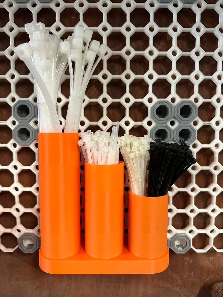 Sản phẩm này có cấu tạo gồm ba ống đựng với chiều cao khác nhau, giúp phân loại dây rút theo kích thước hoặc độ dài rất tiện lợi. Phần đế được tích hợp sẵn các chốt tương thích với lỗ của Multiboard, đảm bảo sự chắc chắn và ổn định khi bạn lấy hoặc cất đồ. Không chỉ dùng cho dây rút, bạn hoàn toàn có thể sáng tạo để đựng bút, tua vít nhỏ, hay các loại dụng cụ cầm tay mà bạn thường xuyên sử dụng trong các dự án 3D printing của mình.