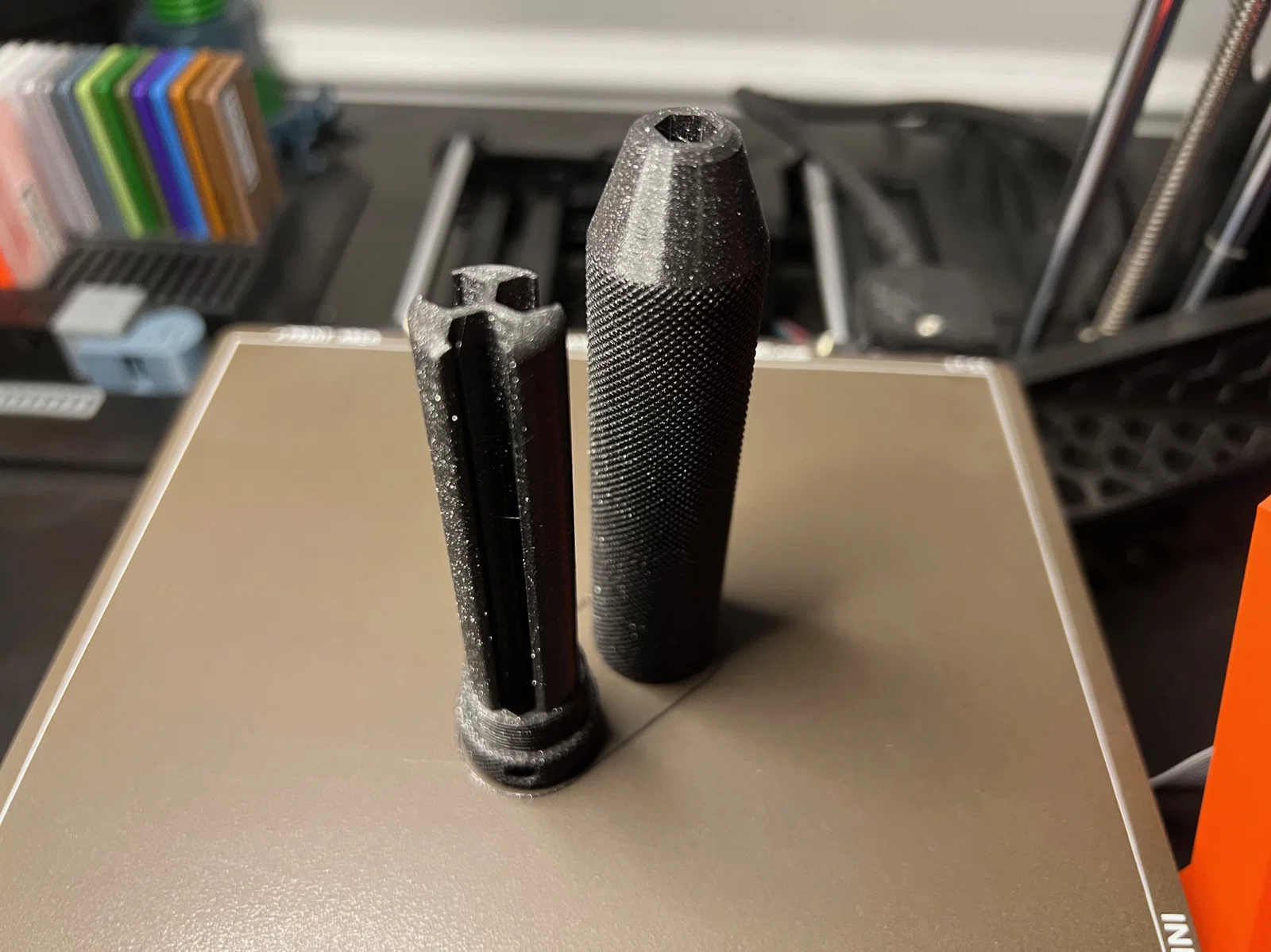Đây là bản remix từ EDC Bit Driver V2 của @Cheesus (cảm ơn đã chia sẻ!). Mình rất thích ý tưởng đó, nhưng mình dựng lại từ đầu để sửa vài điểm nhỏ mình thấy chưa ưng. Thiết kế vẫn lấy cảm hứng mạnh từ bản gốc. Nói chung nó hơi to hơn, nhưng chứa được nhiều bits hơn, chắc chắn hơn nhiều, và là parametric nên bạn muốn làm nhỏ hay to cỡ nào cũng được. Mình in bản của mình để chứa 9 bits (so với bản gốc là 6). Bạn hoàn toàn có thể làm bản 12-bit, hoặc thậm chí 3-bit nếu muốn một cây screwdriver thật gọn.