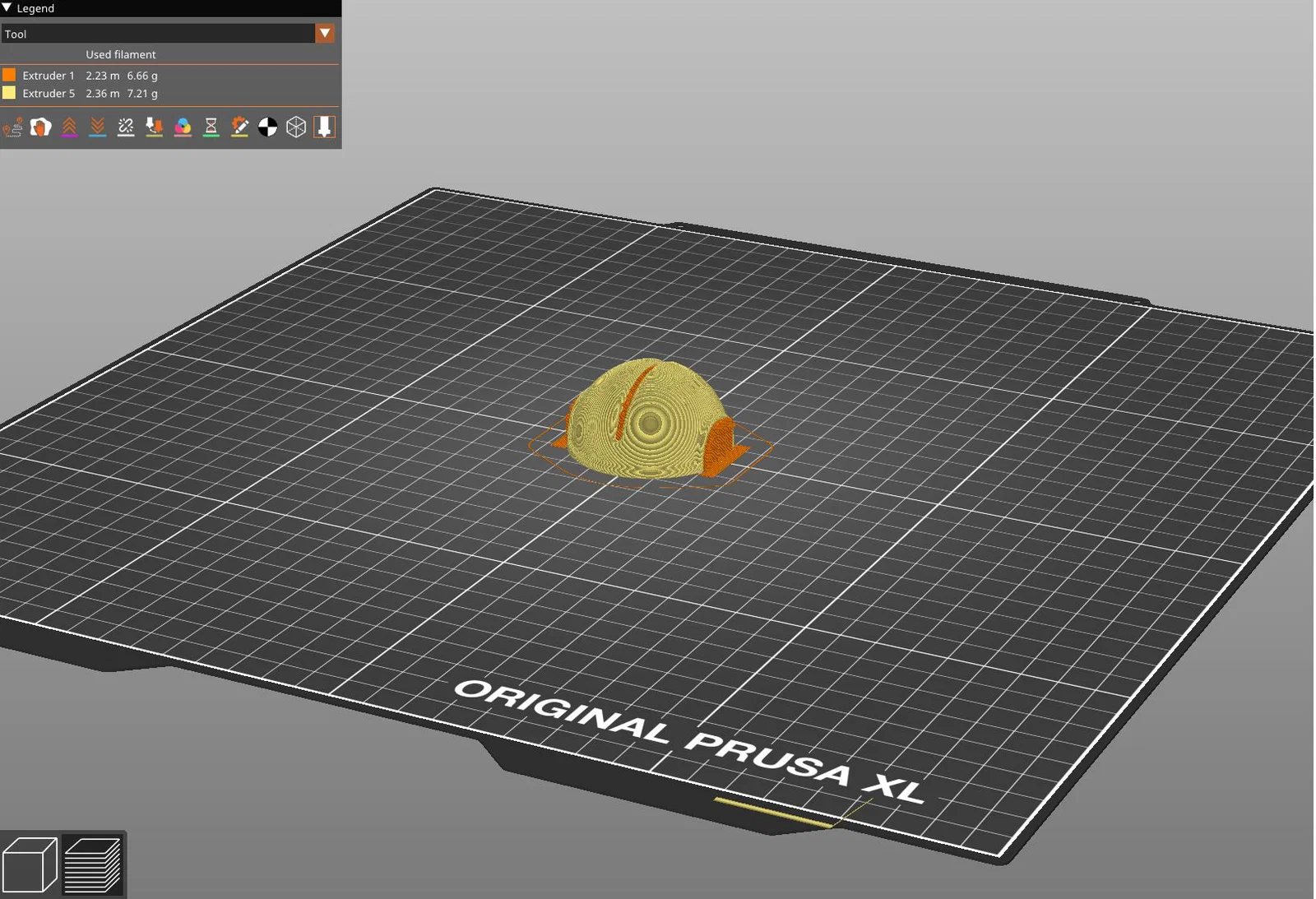 In bằng PLA hoặc PET, dùng supports chỉ trên build plate, với nozzle 0.4, layer height 0.2, 2 perimeters và 15% infill. Nếu bạn có máy XL thì thử để support bằng PLA trong khi in bằng PETG để có bề mặt bên trong mịn hơn.