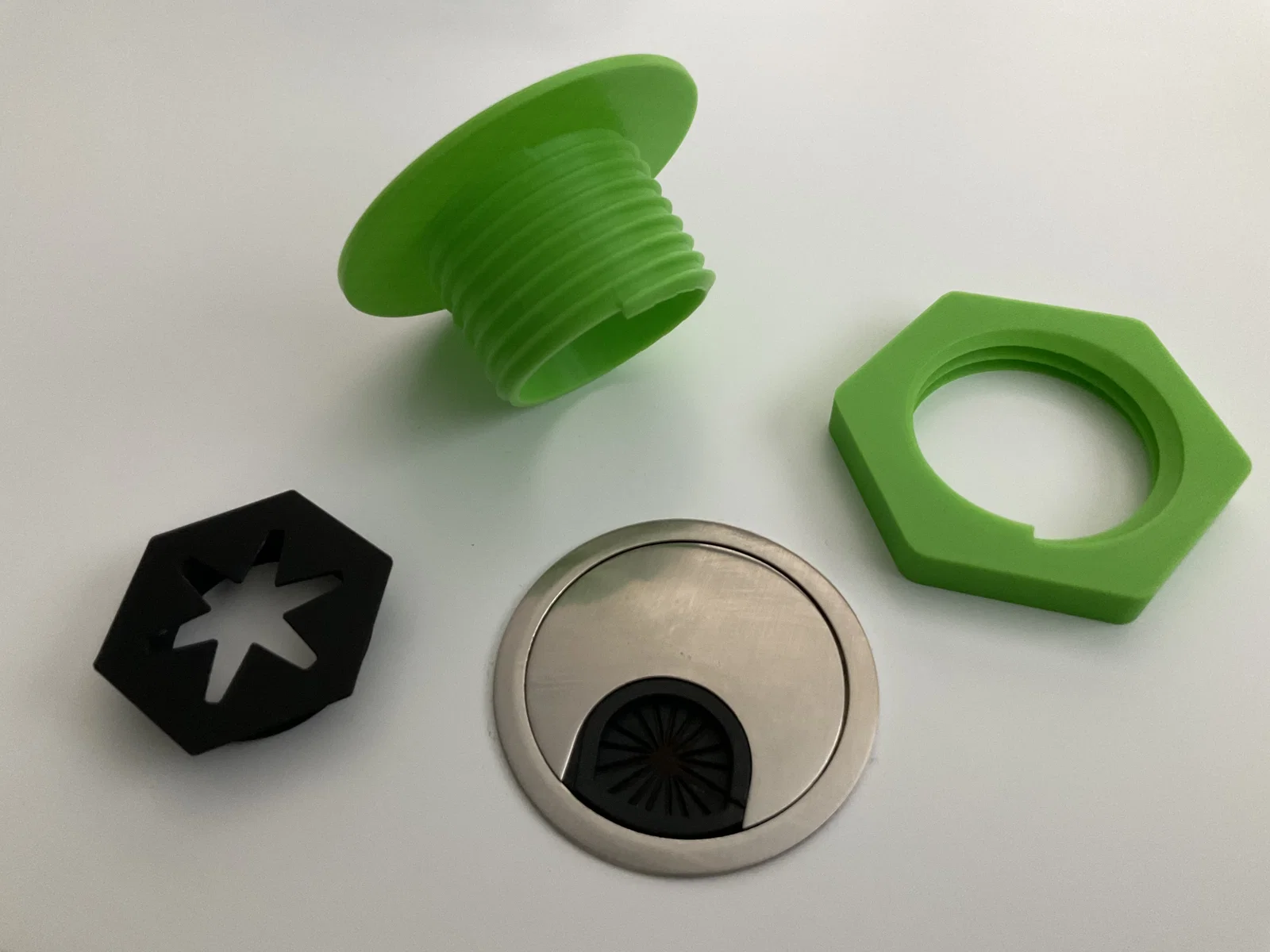 Không ưng grommet luồn dây trên bàn? Bộ “screw” và “lid” dạng vặn ren này giúp bạn lấp lỗ gọn gàng, đổi nắp theo nhu cầu (số lượng/kích thước dây, decor), siết cố định bằng nut bên dưới. Không cần support.