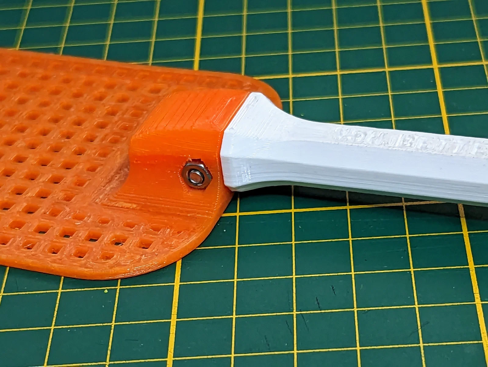 Mẫu vỉ đập ruồi “You Better Fly” do mình thiết kế để chiến ruồi lúc làm văn phòng mùa hè. Khuyến nghị in phần cứng bằng PETG, phần còn lại bằng TPU; cần keo, vít đầu tròn 18mm và tán M3 để lắp ráp.