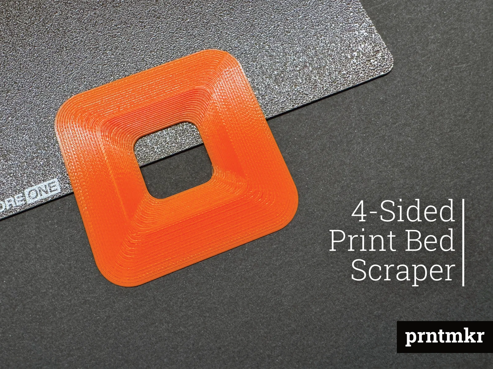 Scraper gỡ mẫu trên print bed thiết kế 4 mặt với 4 cạnh sử dụng: mòn cạnh nào chỉ cần xoay sang cạnh khác. Dùng bền hơn, giảm phải in lại dụng cụ, gỡ print sạch và hạn chế làm trầy bề mặt bed.