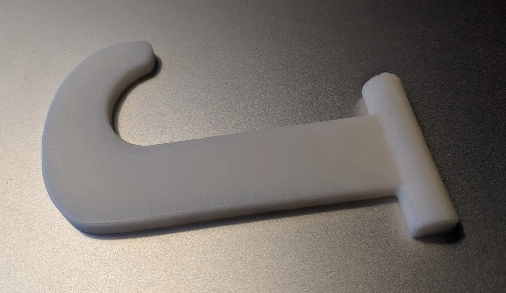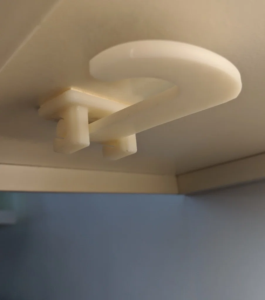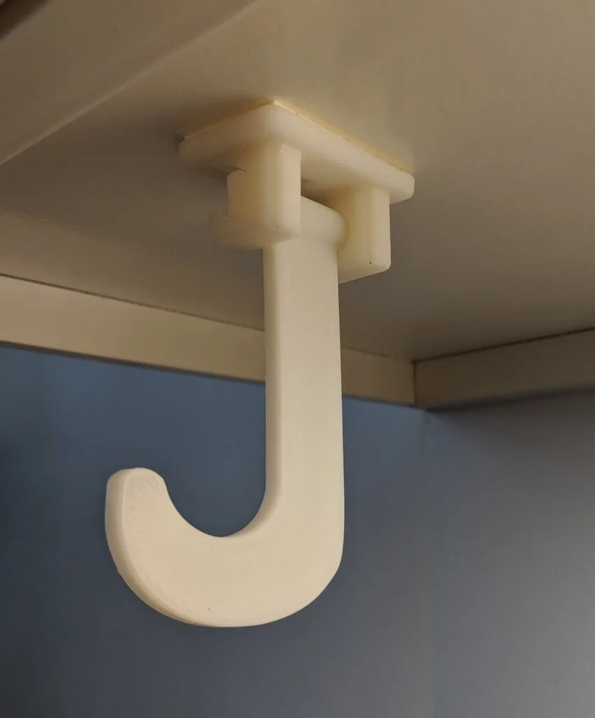 Móc treo chuối gập gắn dưới tủ bếp giúp để chuối gọn và tươi lâu, không chiếm chỗ. Phiên bản làm dày phần đế để bền hơn; in cần supports cho phần đế. Khuyến nghị infill: tay 20%, đế 50%.