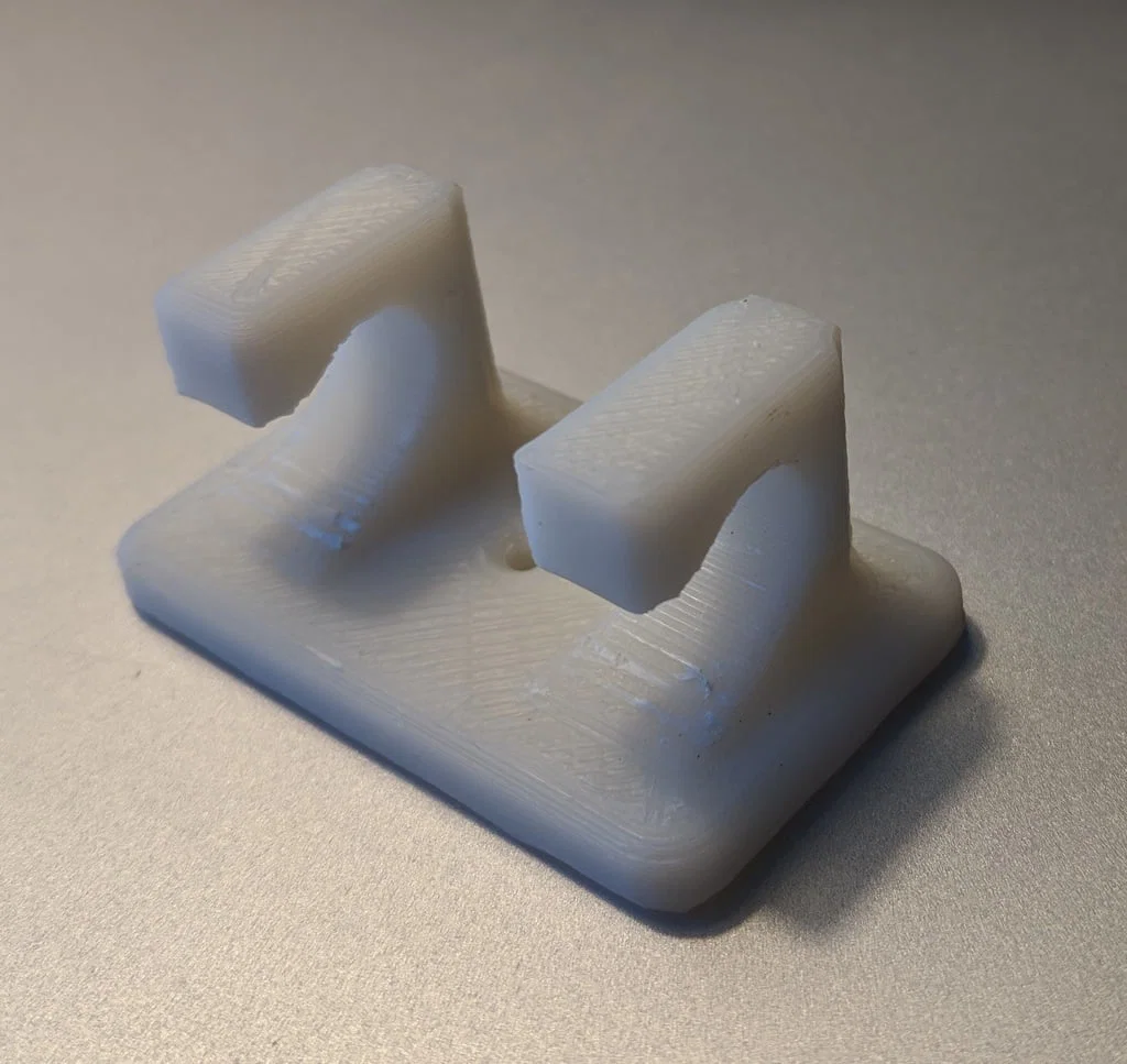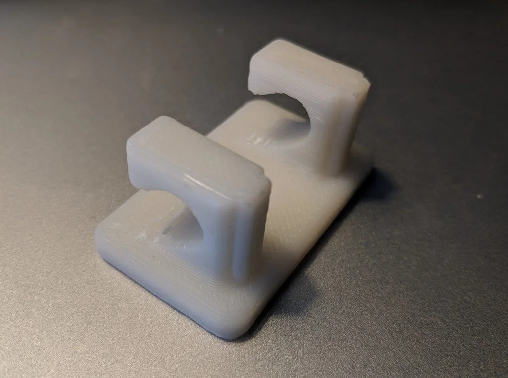 Mình đã làm gãy 2 cái đế bản gốc (một cái 20% infill và một cái 100% infill) trong lúc tháo supports và thử độ bền (cũng khá nhẹ tay). Cả hai đều gãy đúng một chỗ, ở giữa phần chữ C trên đế.