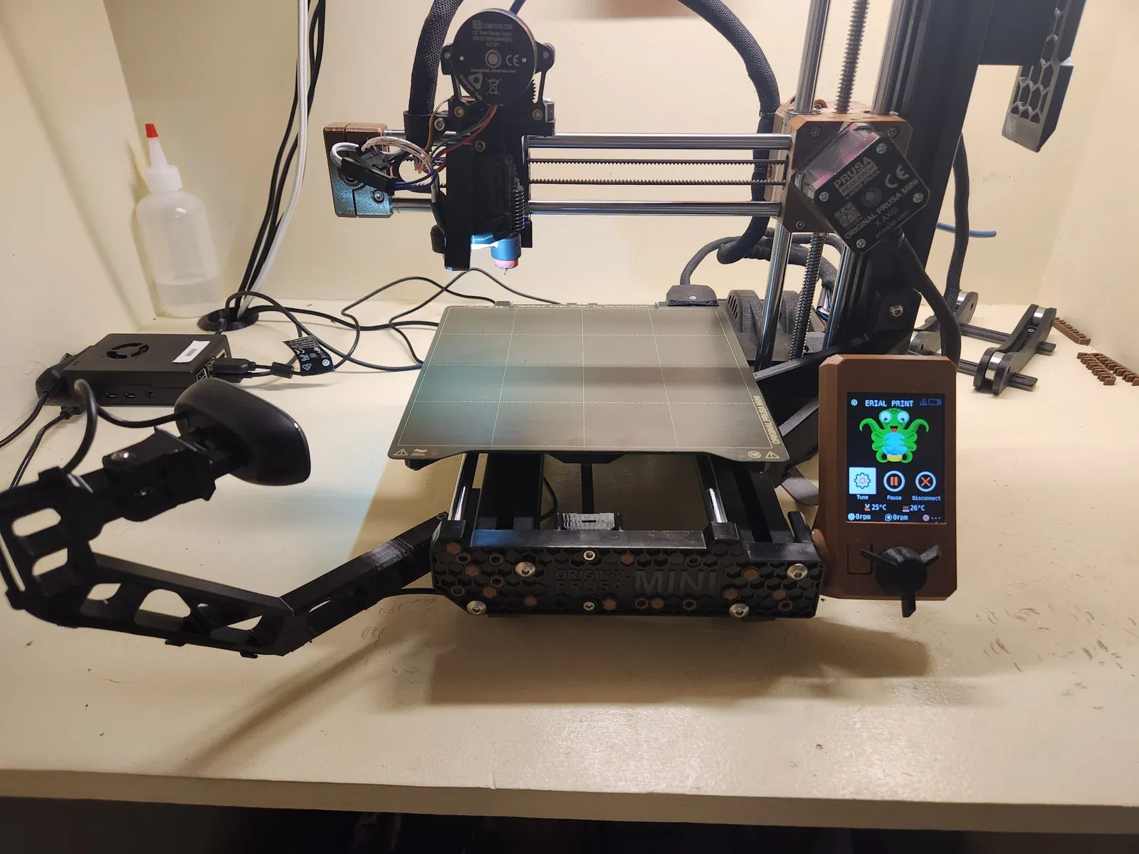 In với hỗ trợ dưới một số kẹp cáp và STL giá đỡ camera. In với 3-4 lớp viền và 20% độ đặc.