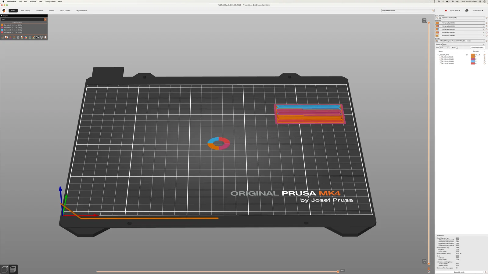 Mình muốn có một mẫu in nhanh để canh chỉnh (tune) đầu tip của sợi Polyterra PLA cho mmu3, nên mình tạo bài test vòng 4 màu này.