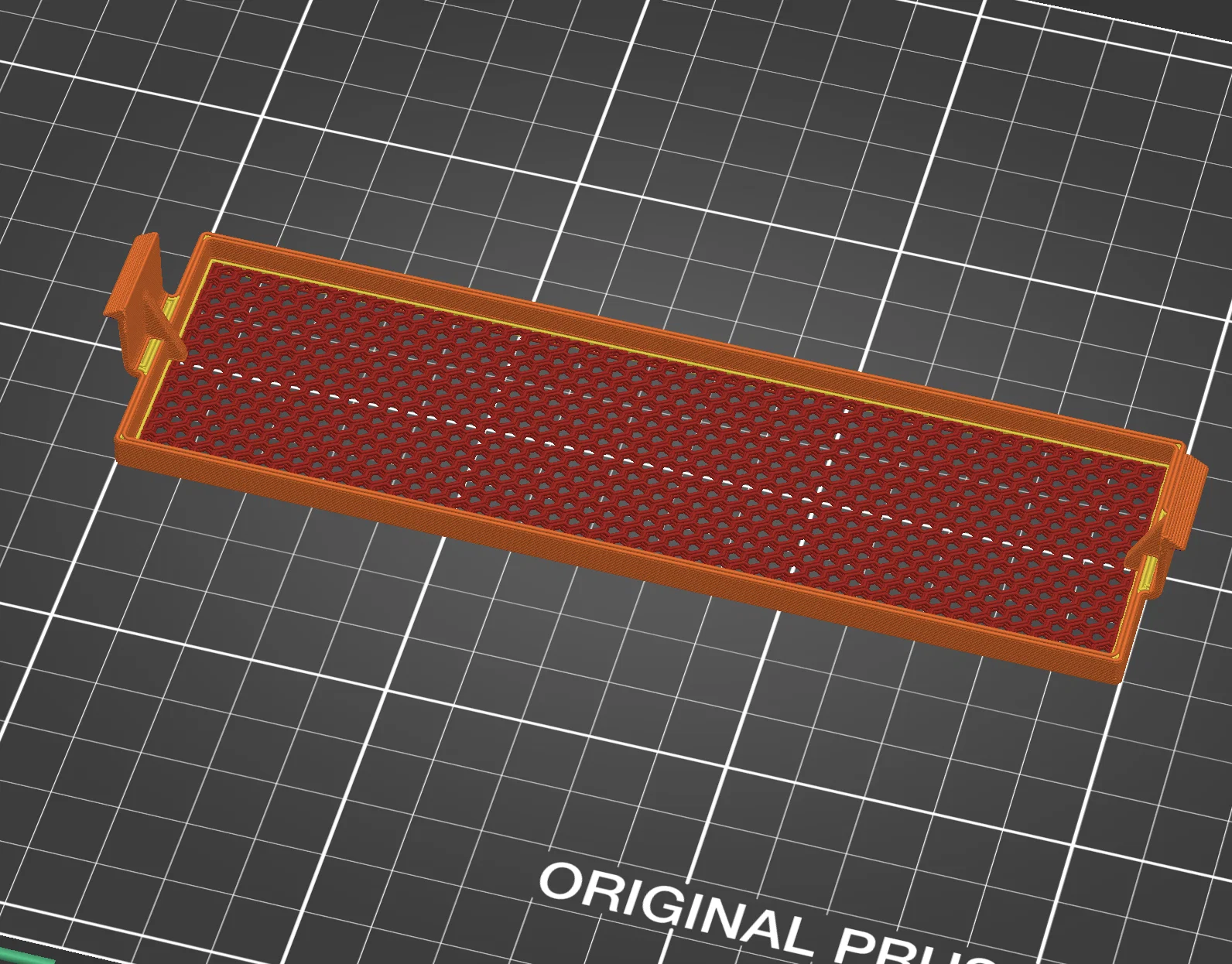 Thay vì thiết kế theo một kiểu mesh cố định, bạn tự chọn pattern theo ý thích nhé! Chỉ cần chọn infill pattern bạn thích trong PrusaSlicer để tùy biến. Có thể bạn sẽ cần chỉnh infill angle và phần trăm infill để ra đúng kiểu nhìn mong muốn. Infill % càng cao thì airflow càng giảm nhưng sẽ giữ bụi nhiều hơn. Khuyến nghị để quạt cách phần mesh ít nhất 10mm để giảm tiếng ồn.