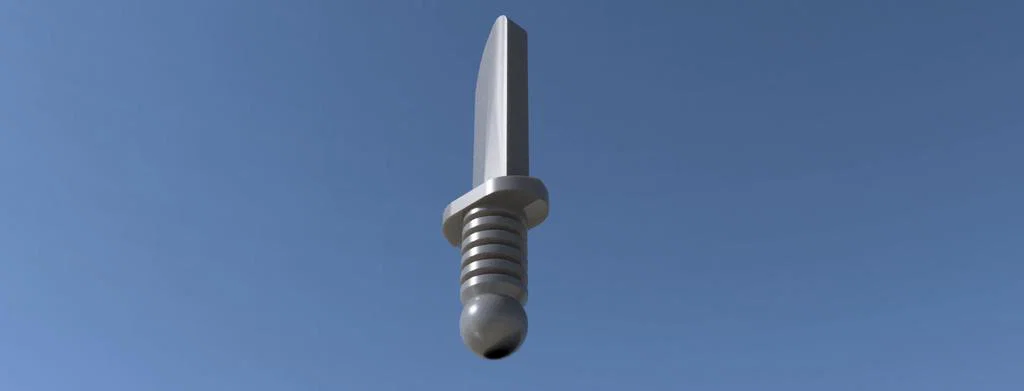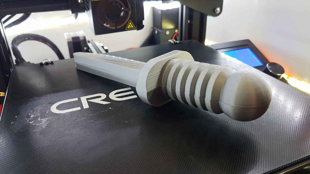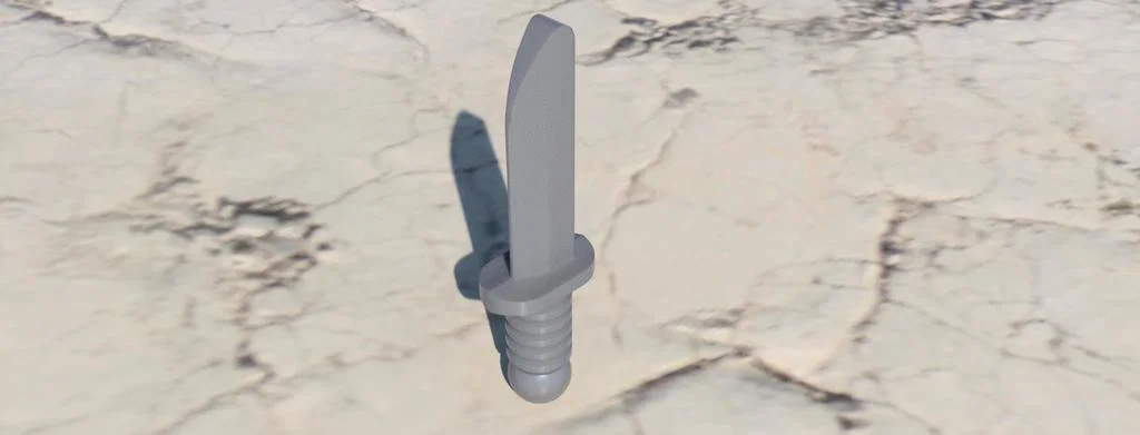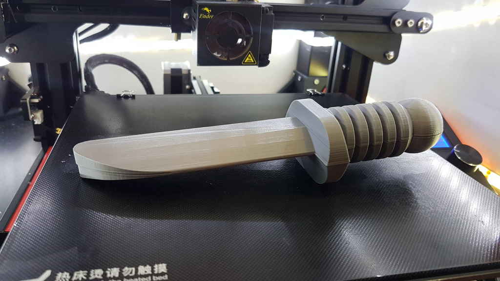 Mẫu Giant ㄥ乇Ꮆㄖ Knife (44658) tỉ lệ 10:1, kích thước x10 khoảng 20.2cm. In gồm 2 phần chính và 2 khớp nối để ráp lại. Thiết lập gợi ý: Ender 3, PLA silk, layer 0.1, infill 15%.