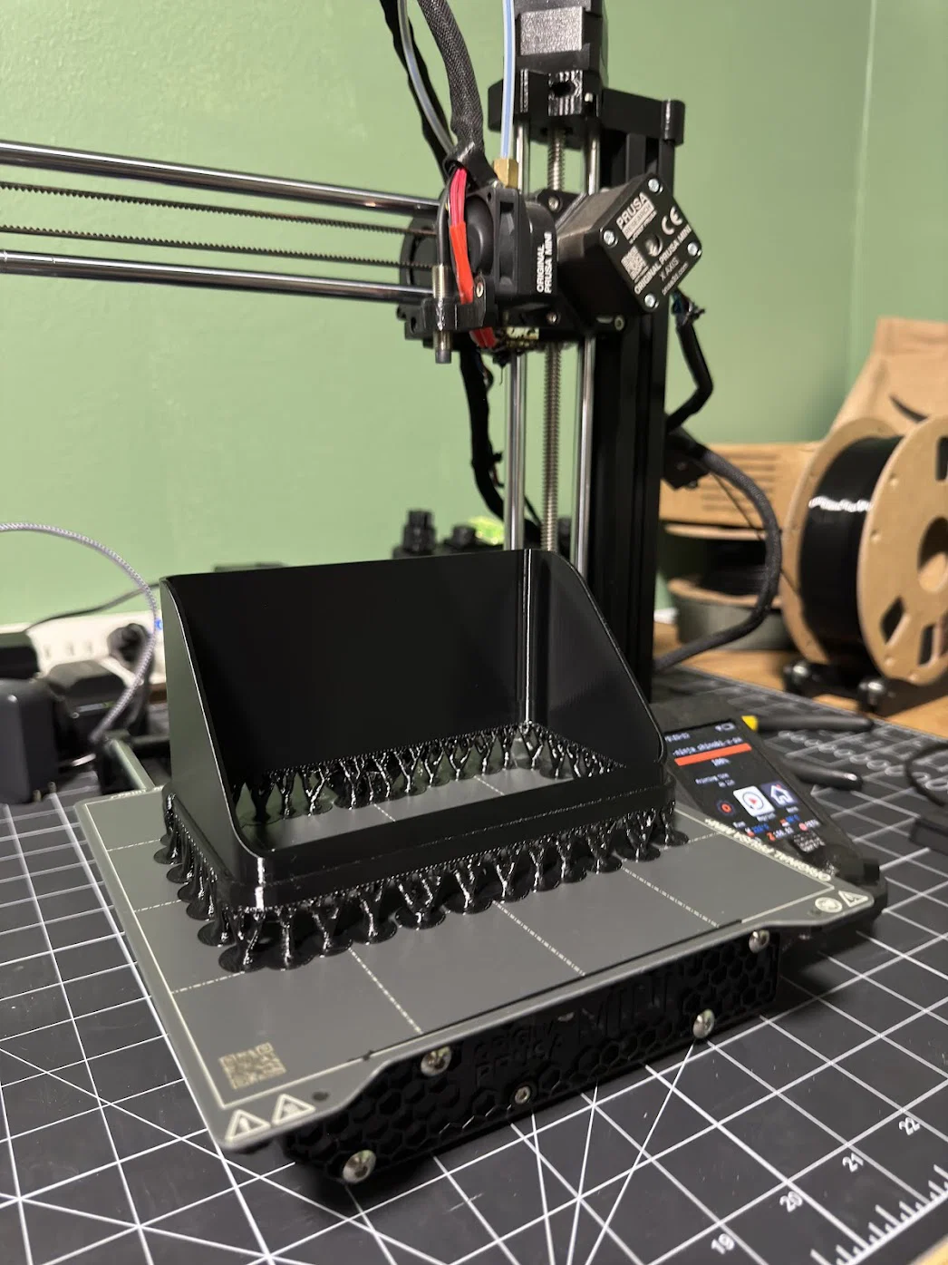 Đây là một sun hood cho Atomos Ninja V và Shinobi V, có thể bắt vít cố định vào đúng vị trí. Cần in kèm supports, và quan trọng là phải đặt orientation của mẫu theo chiều dựng đứng, với phần mép tại điểm tiếp xúc của vít quay xuống dưới.
