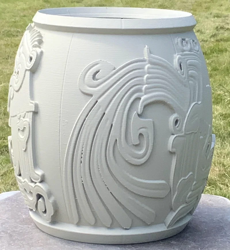 Serpent urn là mẫu chậu/bình có hoạ tiết rắn Aztec lấy cảm hứng từ Quetzalcoatl feathered serpent pyramid. Tác giả in bằng PETG trên Prusa 3.5, có kèm file .3mf, khuyên dùng organic supports và thêm negative volume nếu cần lỗ thoát nước.