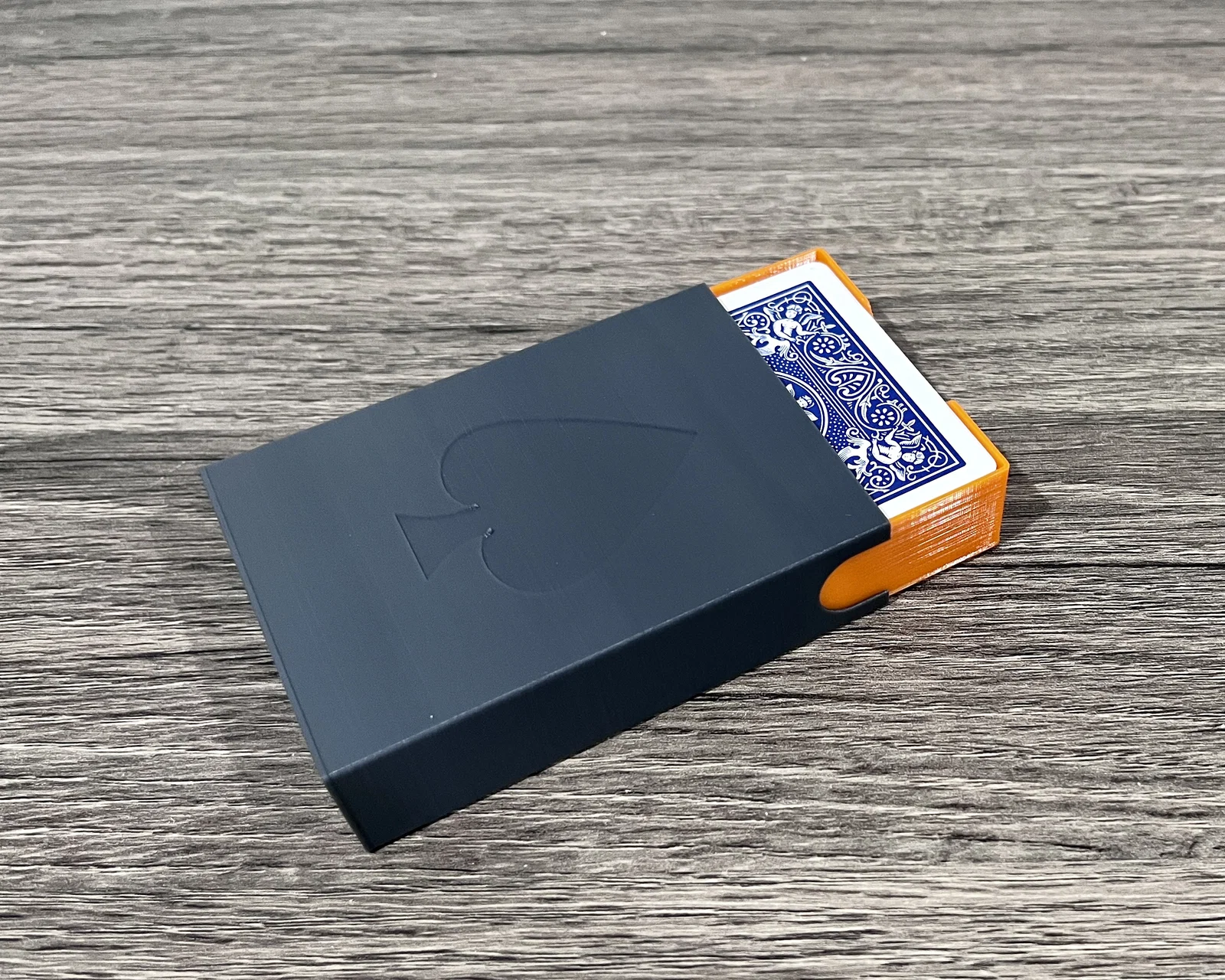 Một hộp đựng bảo vệ mỏng gọn cho một bộ bài tây tiêu chuẩn 52 lá.