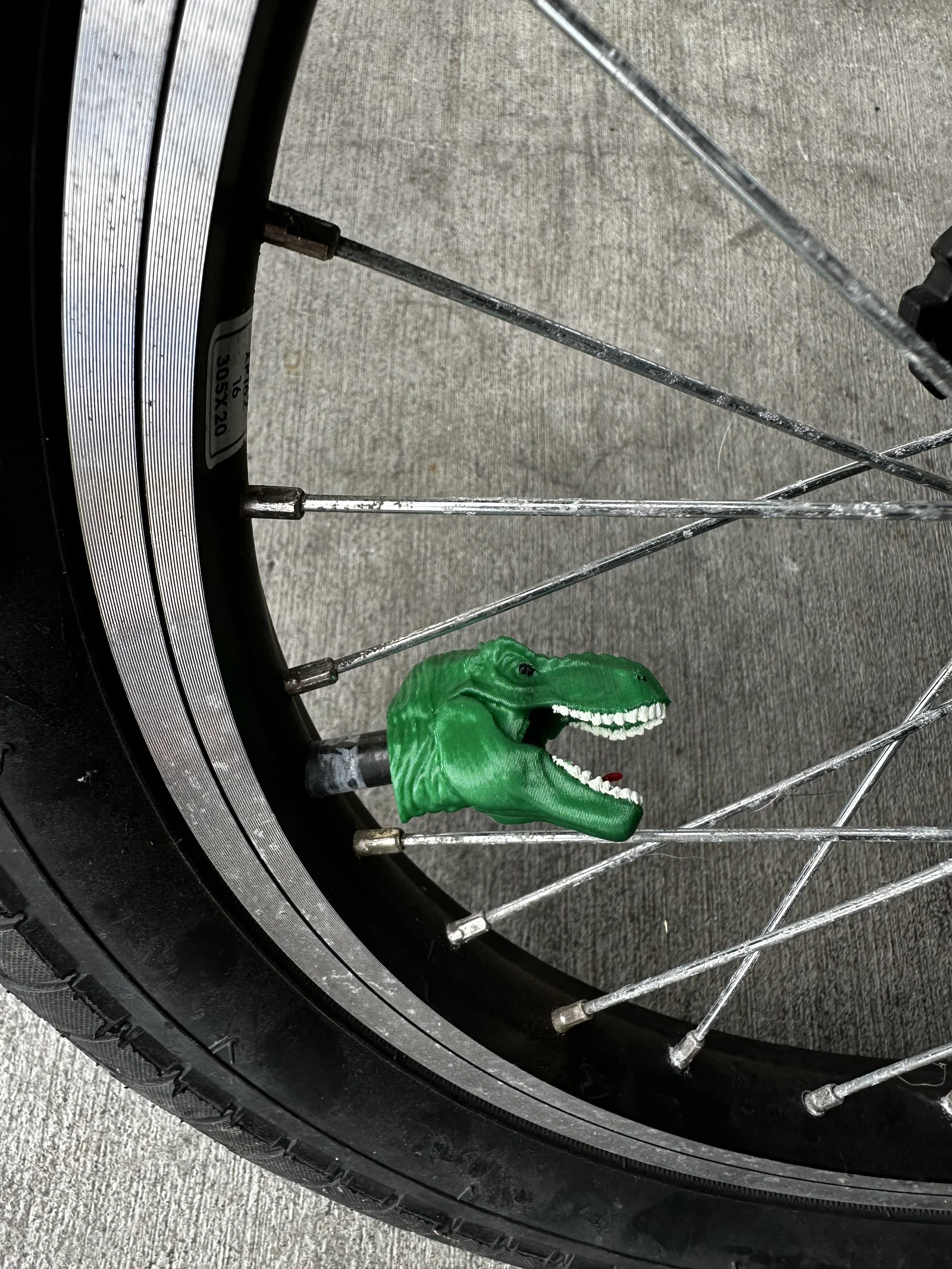 Mẫu nắp chụp van lốp hình T‑Rex bản màu, nhìn ngầu và nổi bật trên xe đạp/ô tô. In bằng MMU3 để lên màu đẹp, nhưng in 1 màu cũng dùng tốt. Khuyến nghị in neck down để ra form chuẩn.