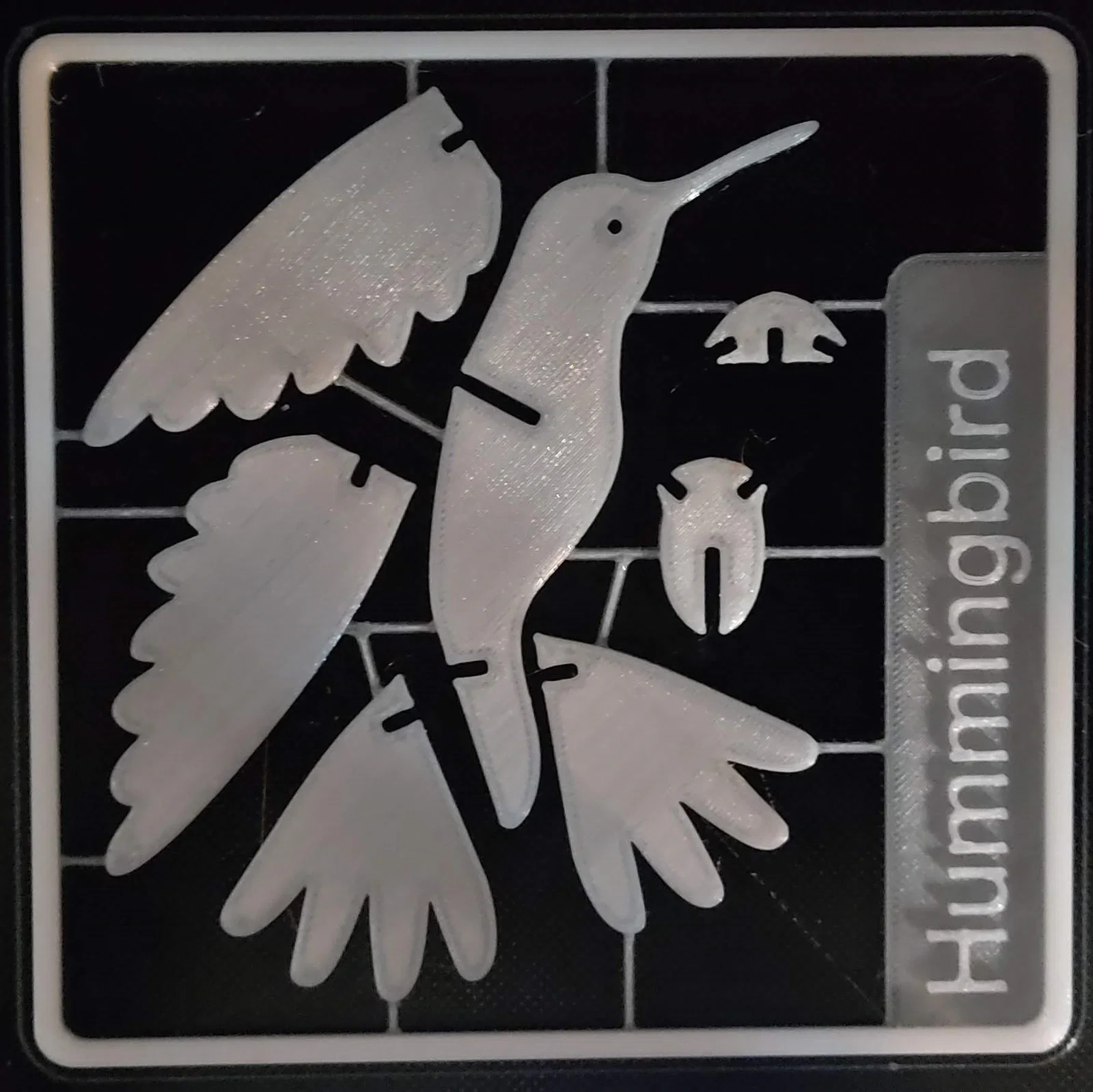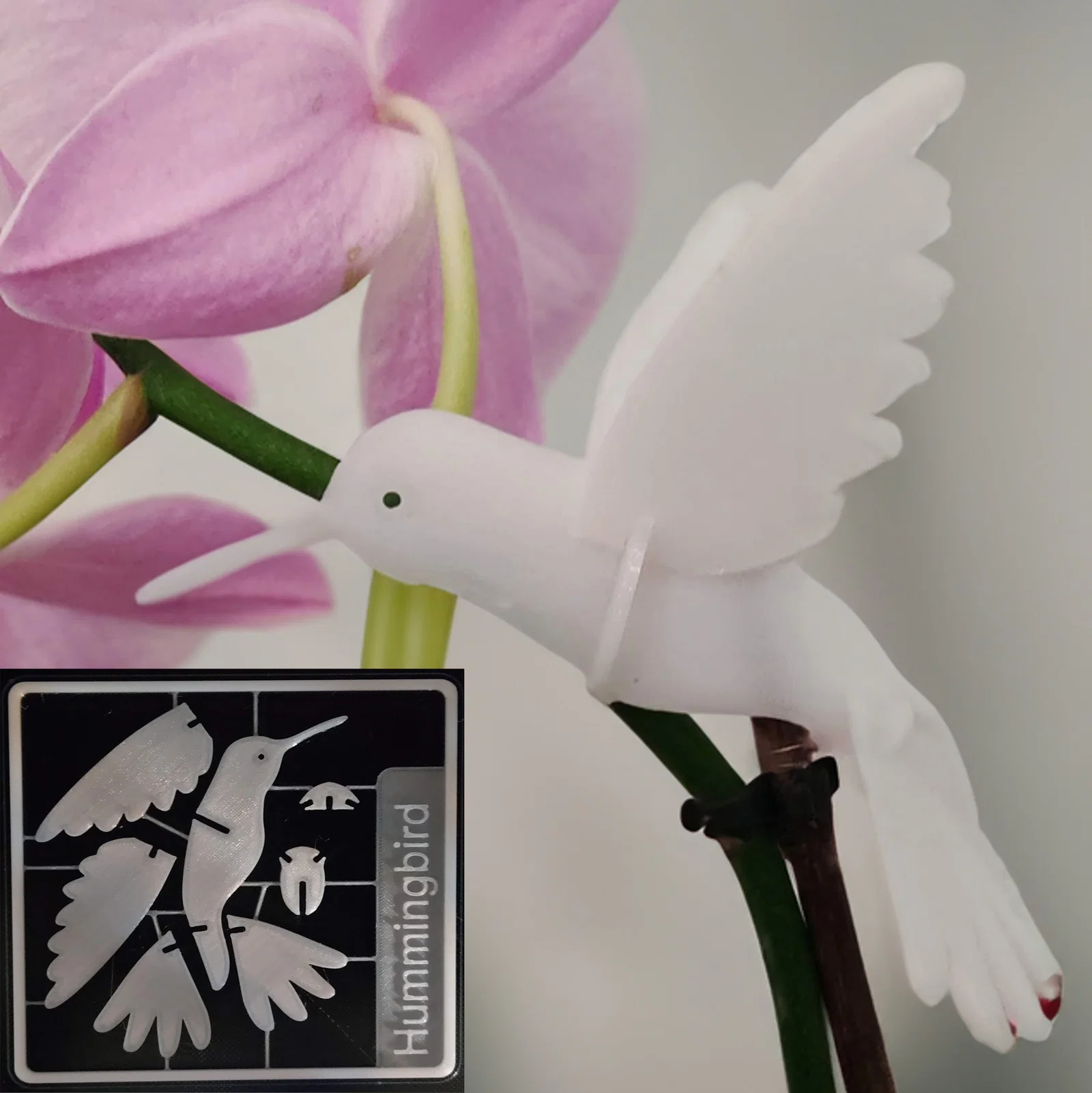 Kit card lắp ráp Humminbird (chim ruồi) đẹp mắt, vừa để chơi thư giãn vừa làm quà tặng. Có thể dùng để trang trí chậu cây, góc làm việc hoặc sưu tầm kit cards; phù hợp in 3D và lắp ráp nhanh gọn.