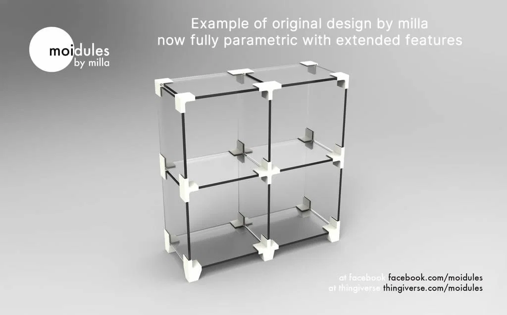 Shelfie giúp bạn tự thiết kế hệ tủ/kệ lưu trữ của riêng mình nhờ thiết kế hoàn toàn parametric. Bạn chỉ cần dùng OpenSCAD để tạo ra các connector Shelfie cần thiết theo bố cục lưu trữ mong muốn. Dự án này dựa trên ý tưởng gốc của Milla Niskakoski http://www.thingiverse.com/thing:681835