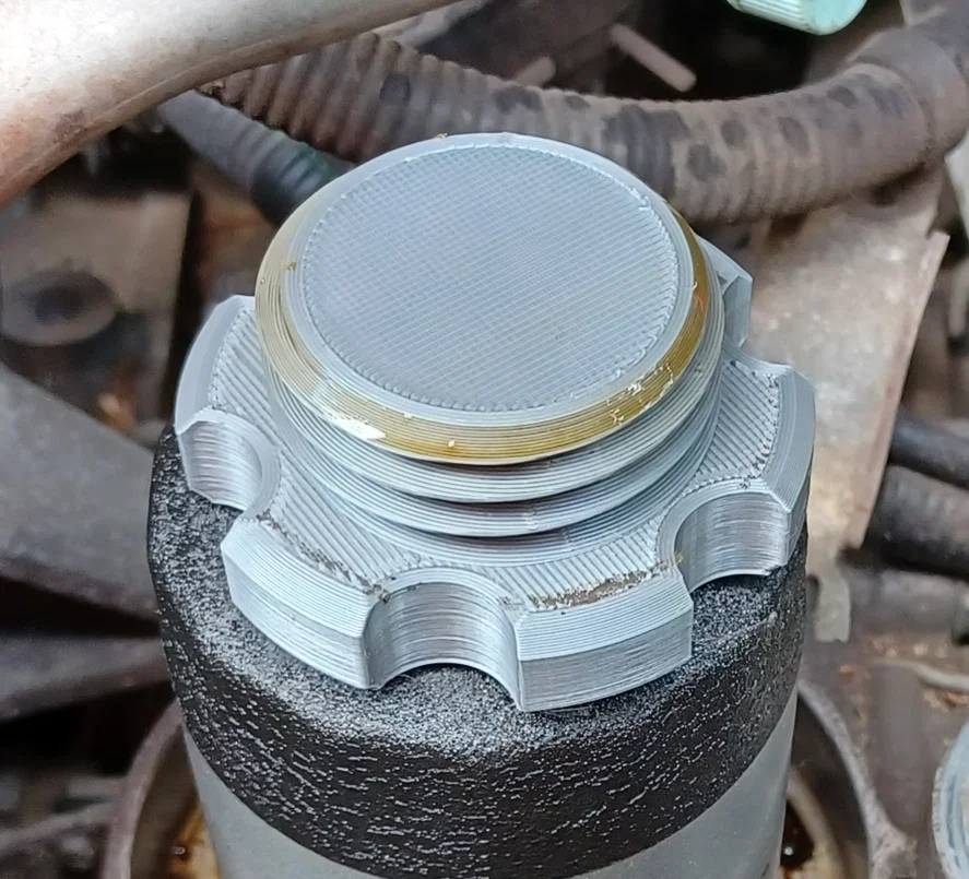 Mình in cái này làm nắp tạm thời khi làm thay dầu bị thất lạc nắp zin. Mình in bằng PETG, nozzle 0.4mm, 4 perimeters để tăng độ bền cho phần ren. Độ fit hơi chặt một chút, nhờ vậy nó bám chắc và không bị tuột trong khoang máy.