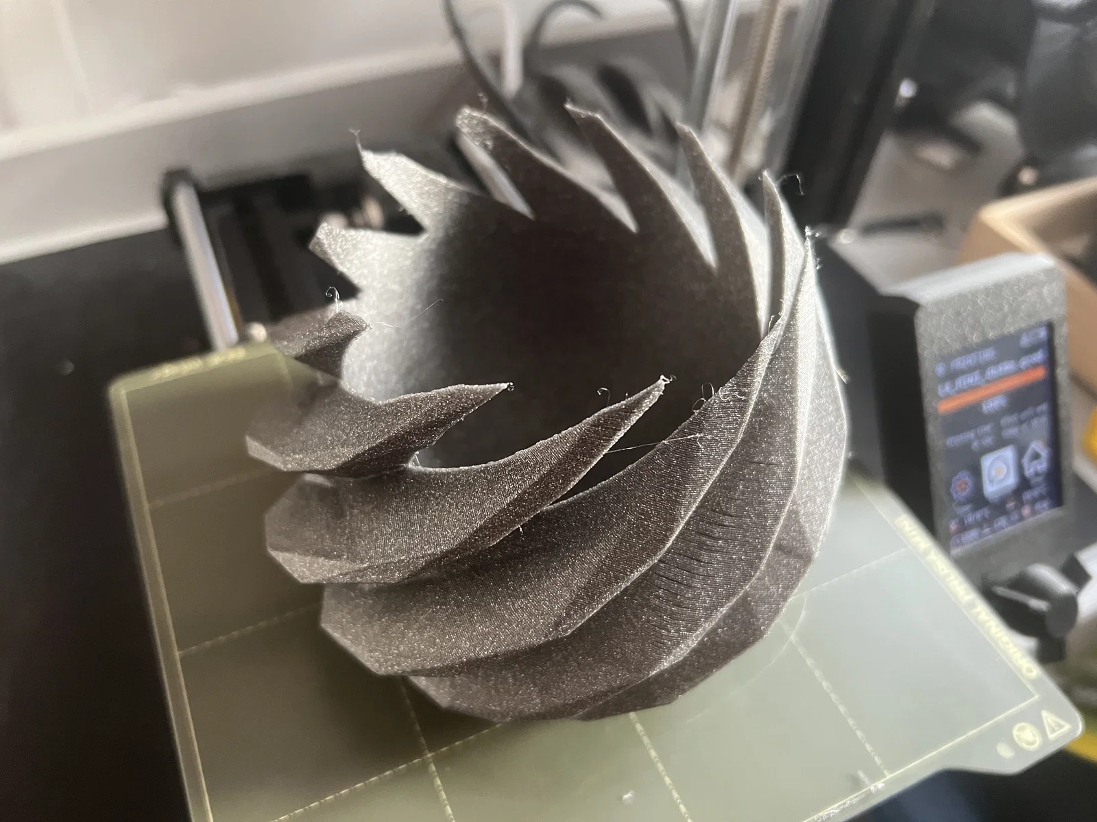 Fire Pot là mẫu chậu low poly dạng xoắn, có 2 phiên bản: có lỗ và không có lỗ. Bản có lỗ có thể in layer 0.25, 3 perimeters và không infill để in nhanh mà vẫn khá chắc.