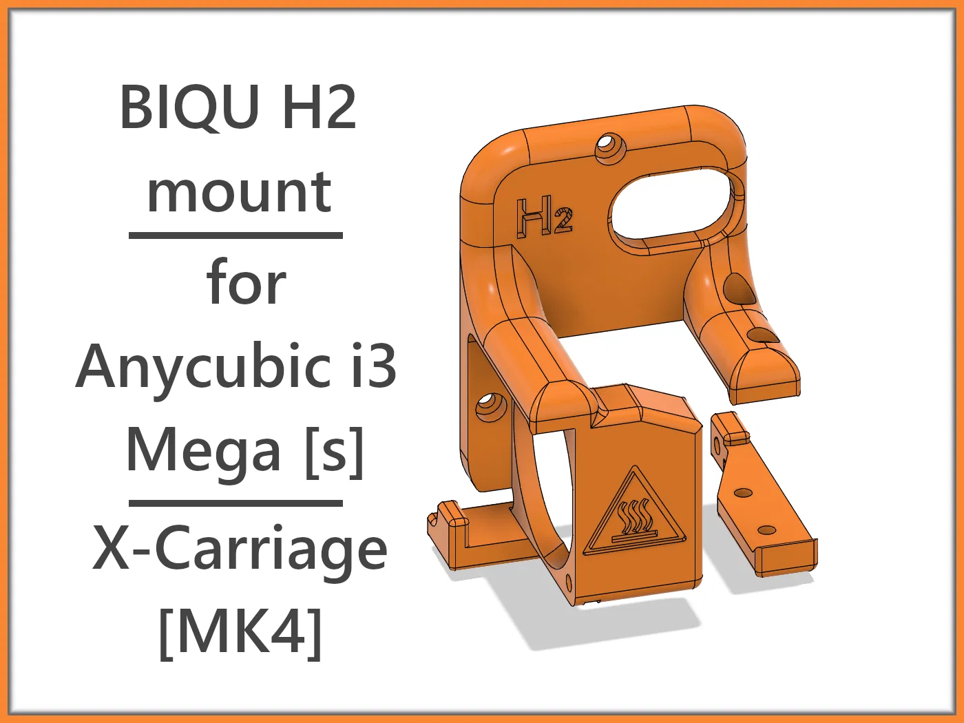 Ngàm/mount lắp BIQU H2 Direct Extruder cho Anycubic i3 Mega dựa trên X-Carriage MK4. Yêu cầu thay quạt 24V và heating cartridge; khuyến nghị in PETG/ASA/ABS vì PLA dễ biến dạng do nhiệt.