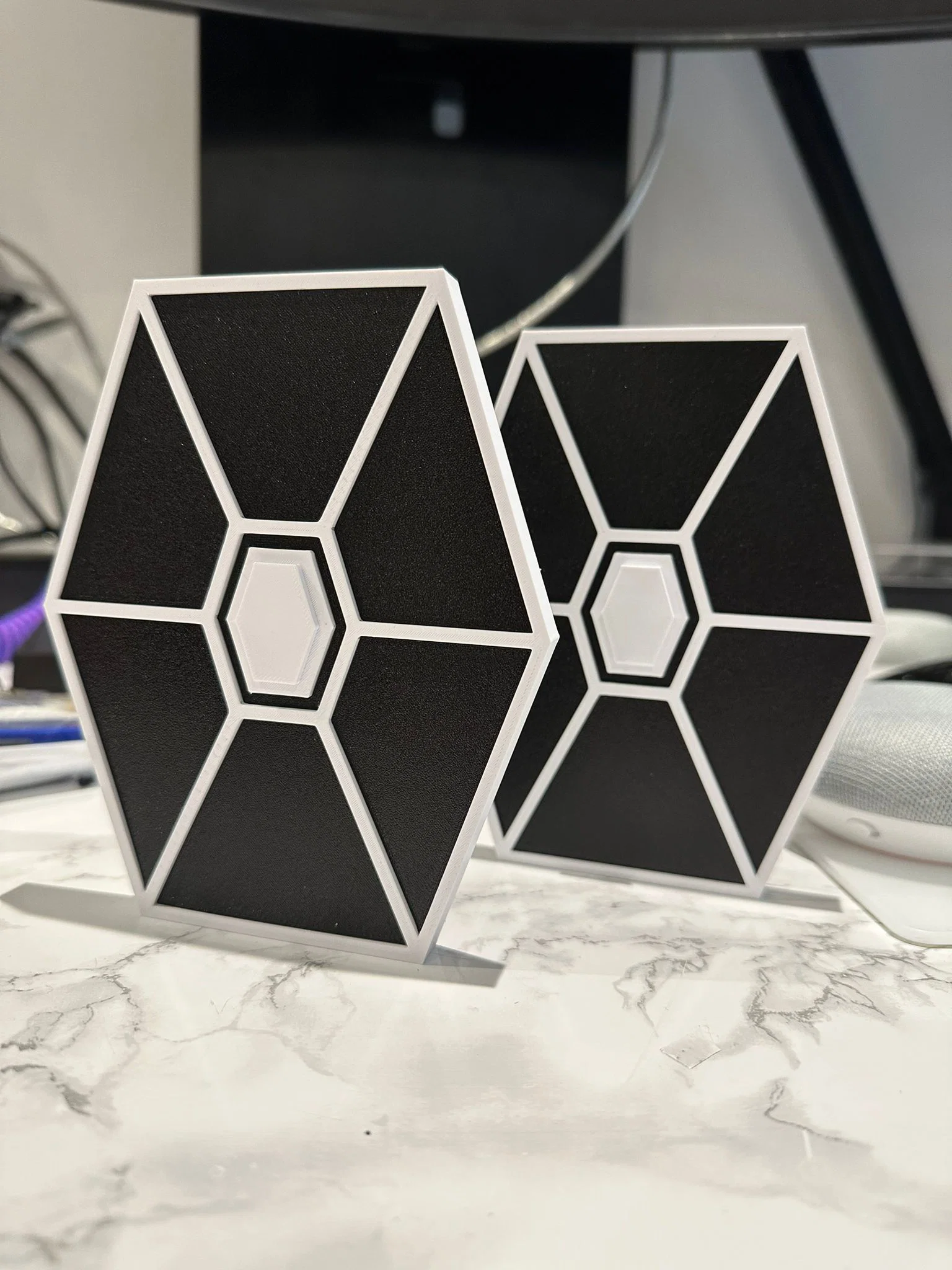 Giá đỡ Google Home Mini phong cách Tie Fighter, gồm nhiều chi tiết trang trí. Panel in phẳng không cần supports; cánh cần supports nhỏ; ngàm trước/sau in dựng đứng. Khuyến nghị PLA+; có thể phải giảm scale panel trong 97–98%.