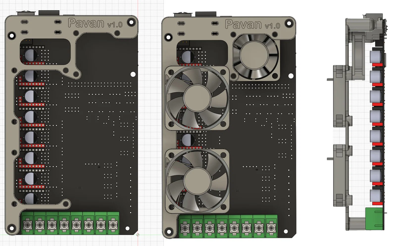 m8p Pavan là ngàm gắn quạt cho BTT Manta M8P, giúp làm mát stepper motor drivers và module CB/CM4. Dùng 2 quạt 5010 cho drivers và 1 quạt 4010 cho CB/CM4, yêu cầu Manta M8P Voron mount.
