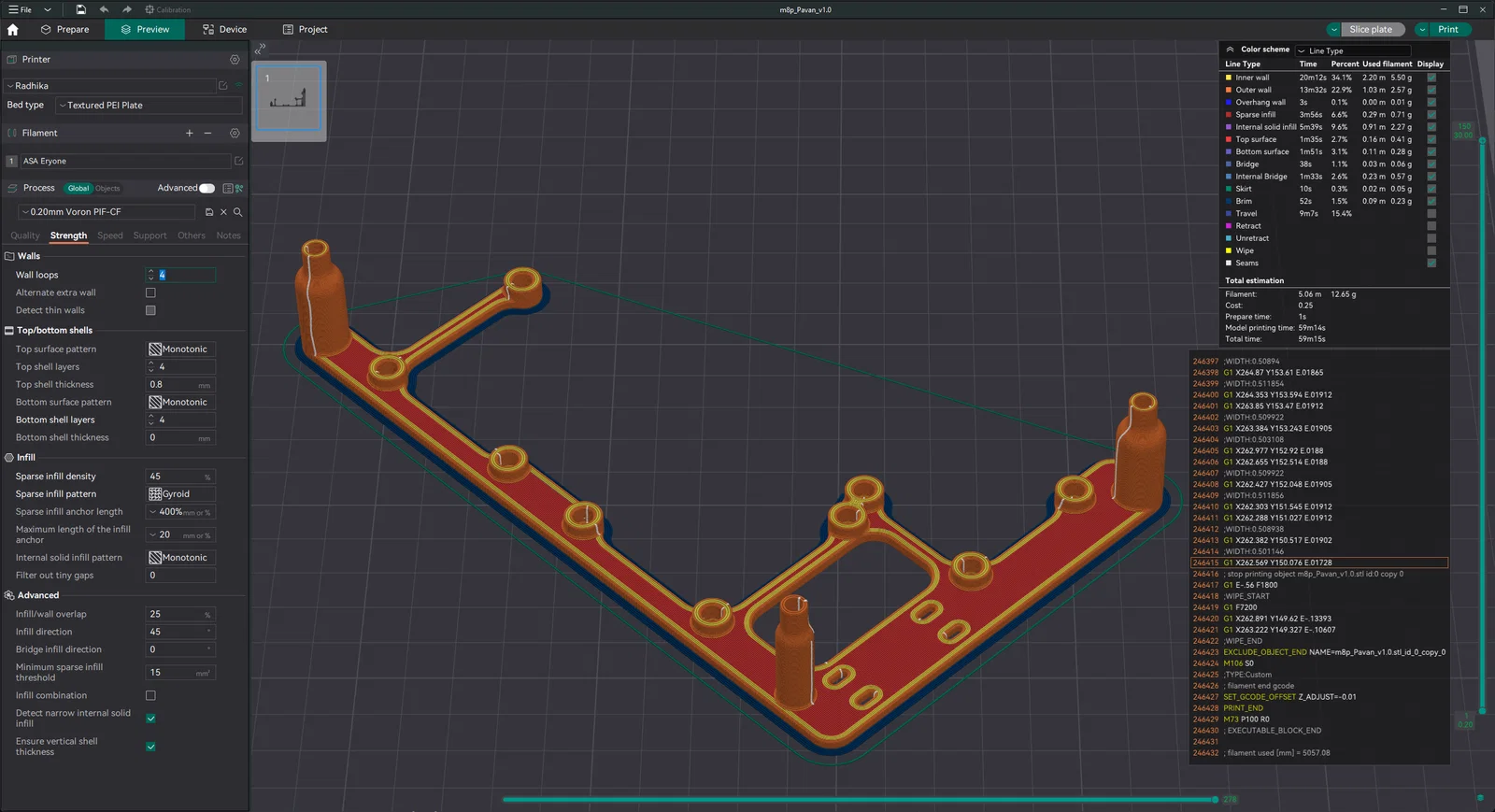 - In theo setting Voron tiêu chuẩn (4 walls, 5 lớp top & bottom, 40% infill).