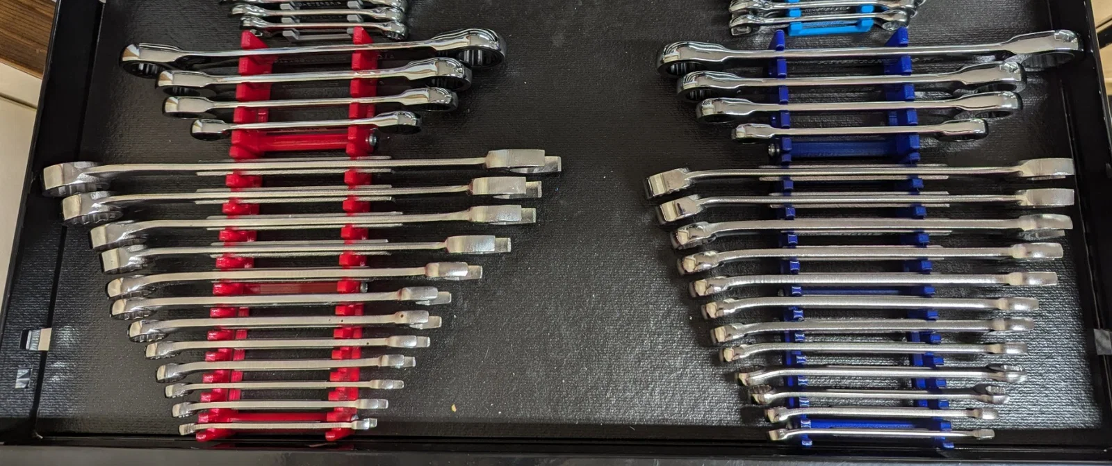 Bản remix giá đỡ cờ-lê parametric trong OpenSCAD (từ dede67) với biến và comment tiếng Anh, thêm vài biến mới. Đo cờ-lê bằng caliper, nhập vào OpenSCAD; spacer theo M4, in PETG không support.