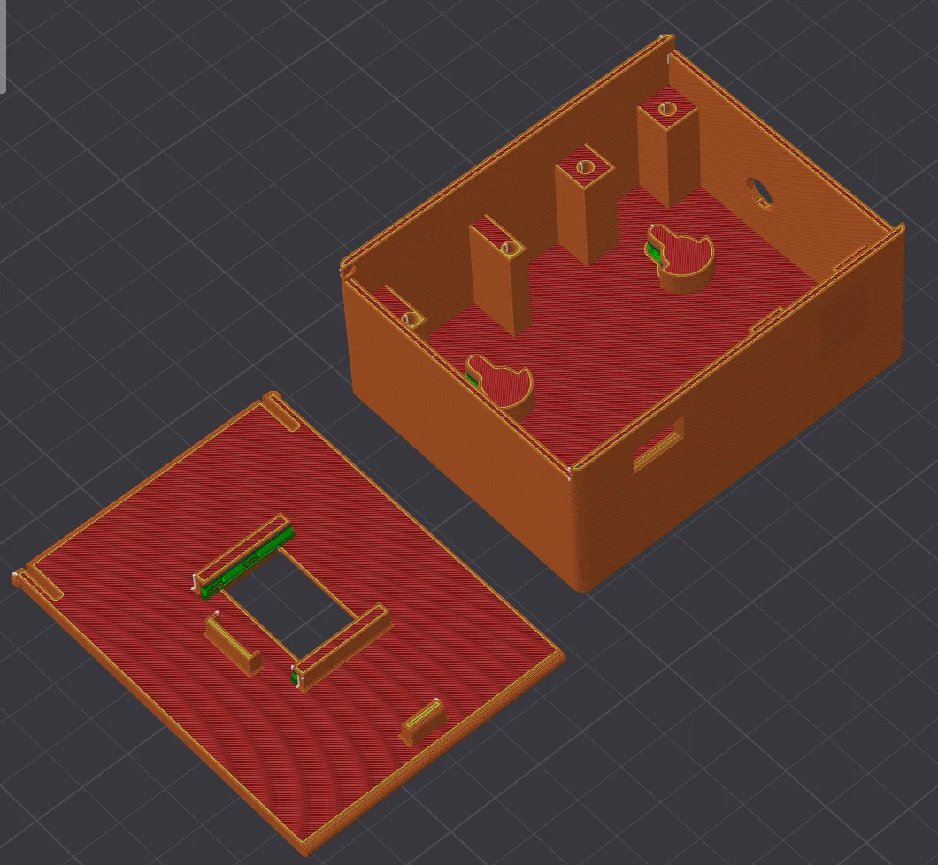 Dùng support “Snug” cho cả hai phần, và thêm “build plate only” cho phần case: