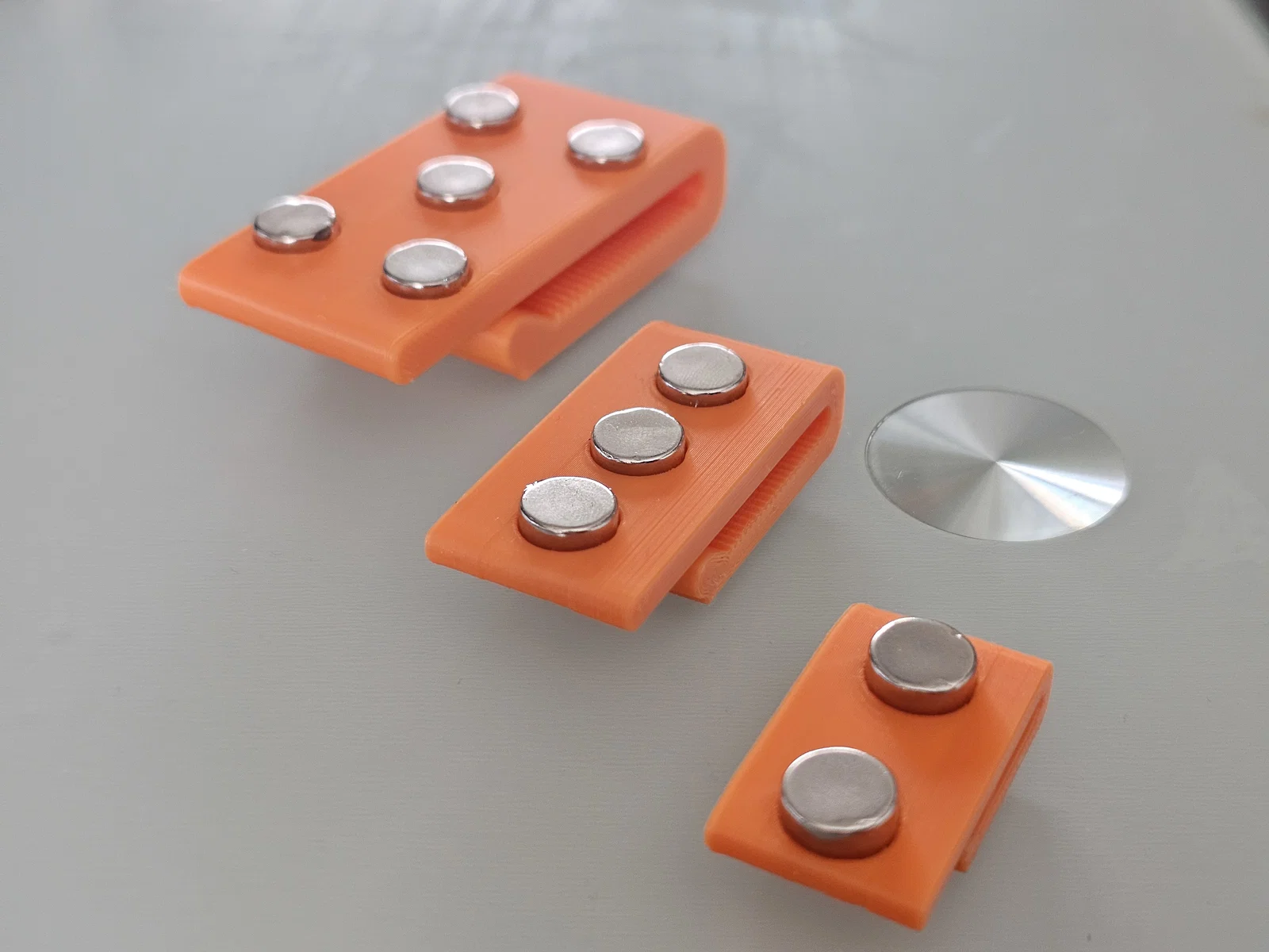 File có thể chỉnh sửa cho nhiều loại nam châm, dễ scale và edit. Có STEP để sửa trong CAD, STL cho Blender (Boolean tạo lỗ). Khuyến nghị gắn dọc; file “Magnet” có rãnh sâu 3mm cho nam châm 10mm.