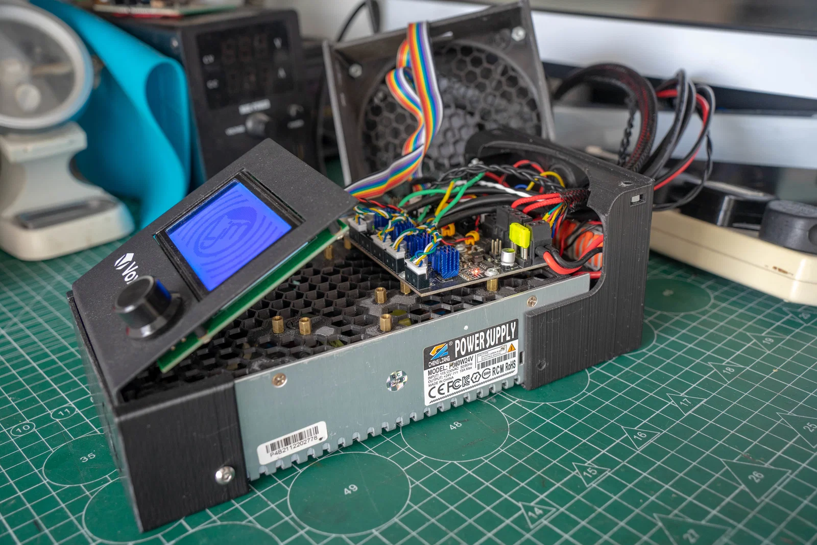 - Với bộ nguồn Meanwell LRS-350-24 bản mỏng, khay điện tử và fan shroud vẫn dùng được, nhưng backplate và ngàm LCD sẽ phải rút ngắn lại.